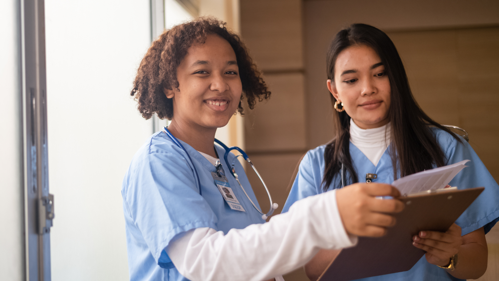 Medical Student Romance in College Corridor