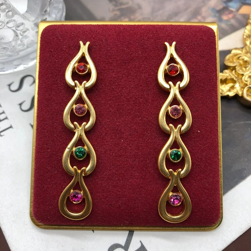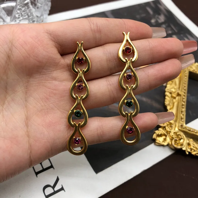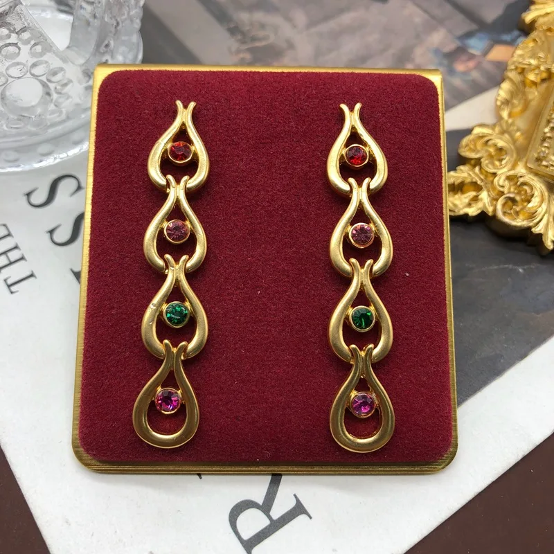 bnLaXCfQqMHere you can buy Medieval Palace Style Colorful Rhinestone Water Drop String Versatile and Elegant Mid length Earrings with free delivery to your post office.