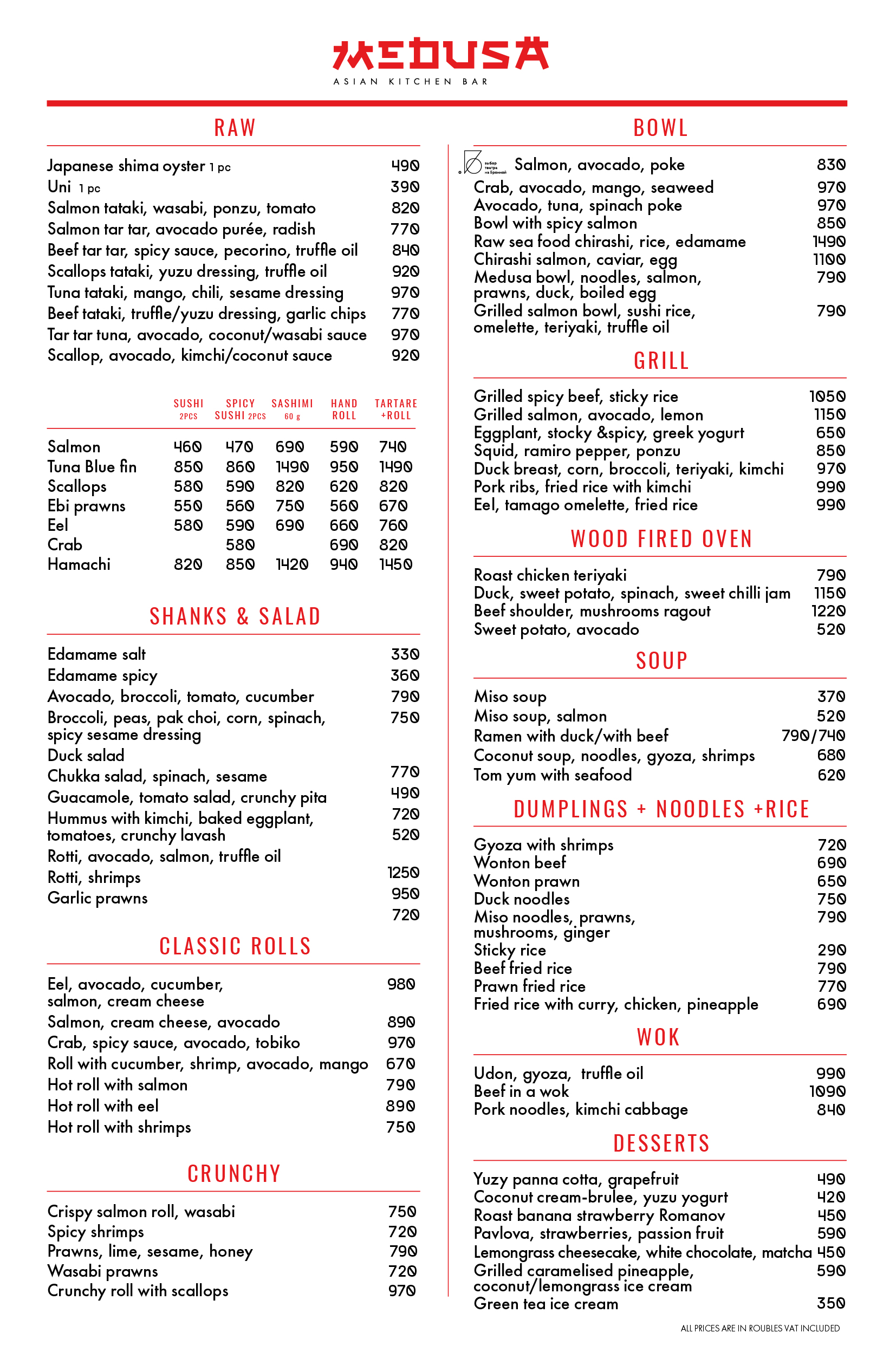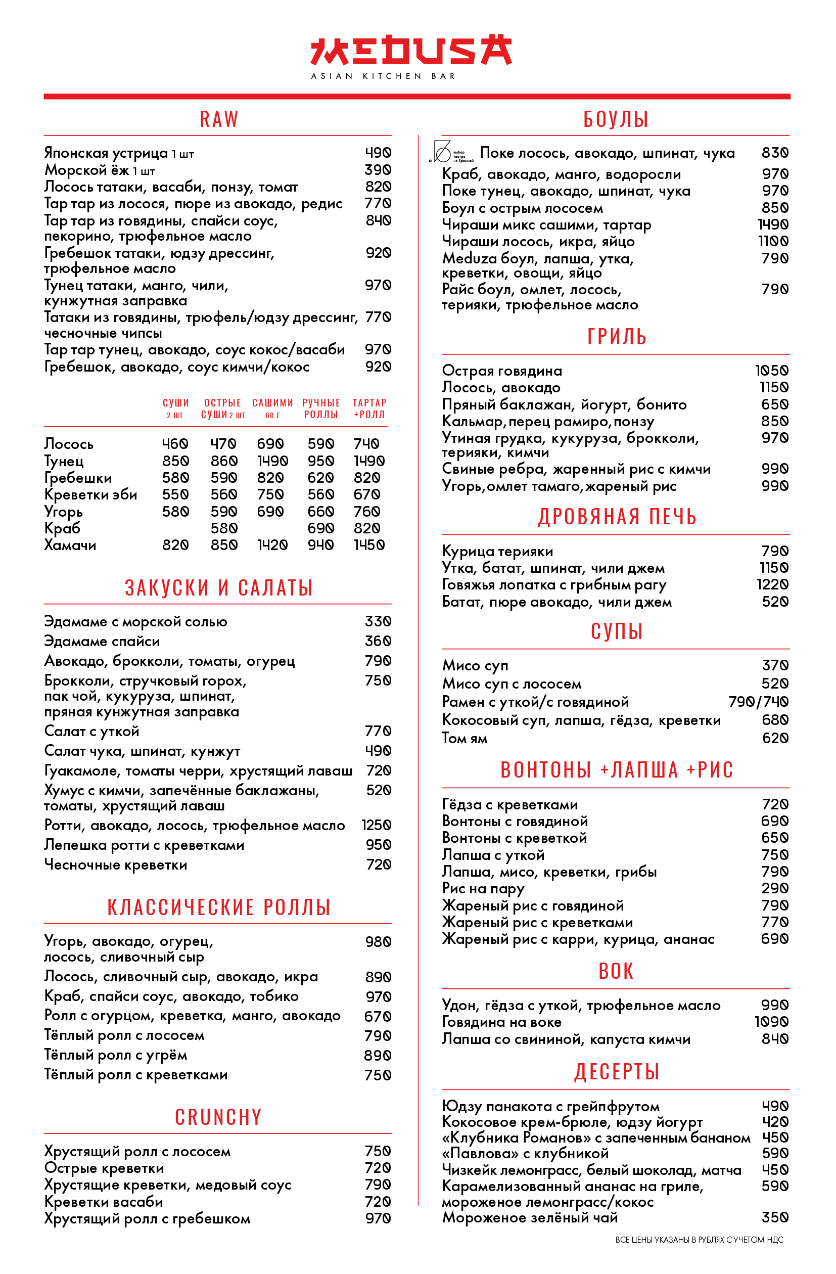 Medusa меню 101 фотографий
