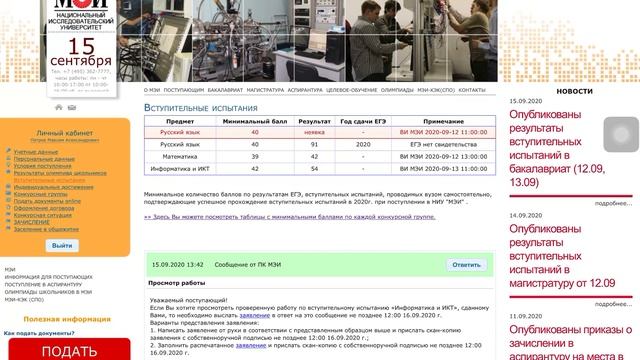 Мэи зачисления