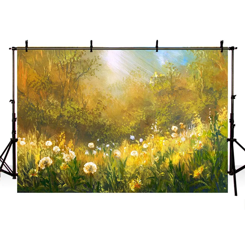 "Mehofond Oil Painting Spring Backdrop Green Leaves Tree Flower Newborn Portrait Baby Shower Photography Background Photo Studio" * Buy Now Just For 27$