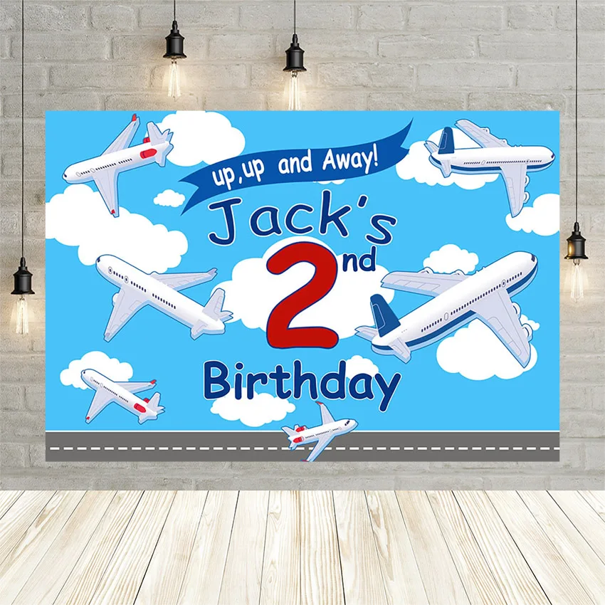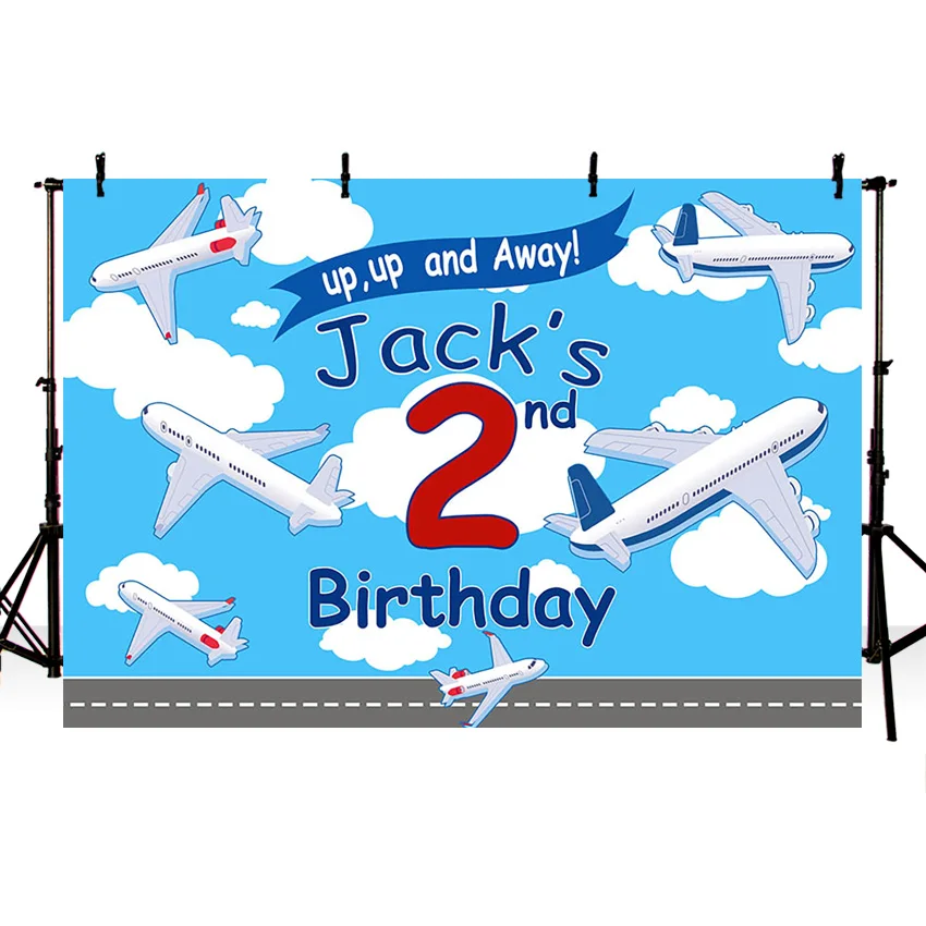 "Mehofond Up Up Away Jack's 2nd Birthday Photography Cloth Backdrops Airplane Blue Sky Cloud Background Photo Studio Photozone" * Buy Now Just For 24$