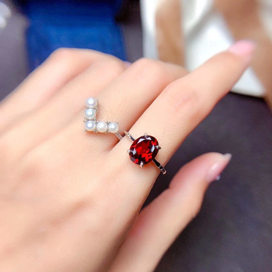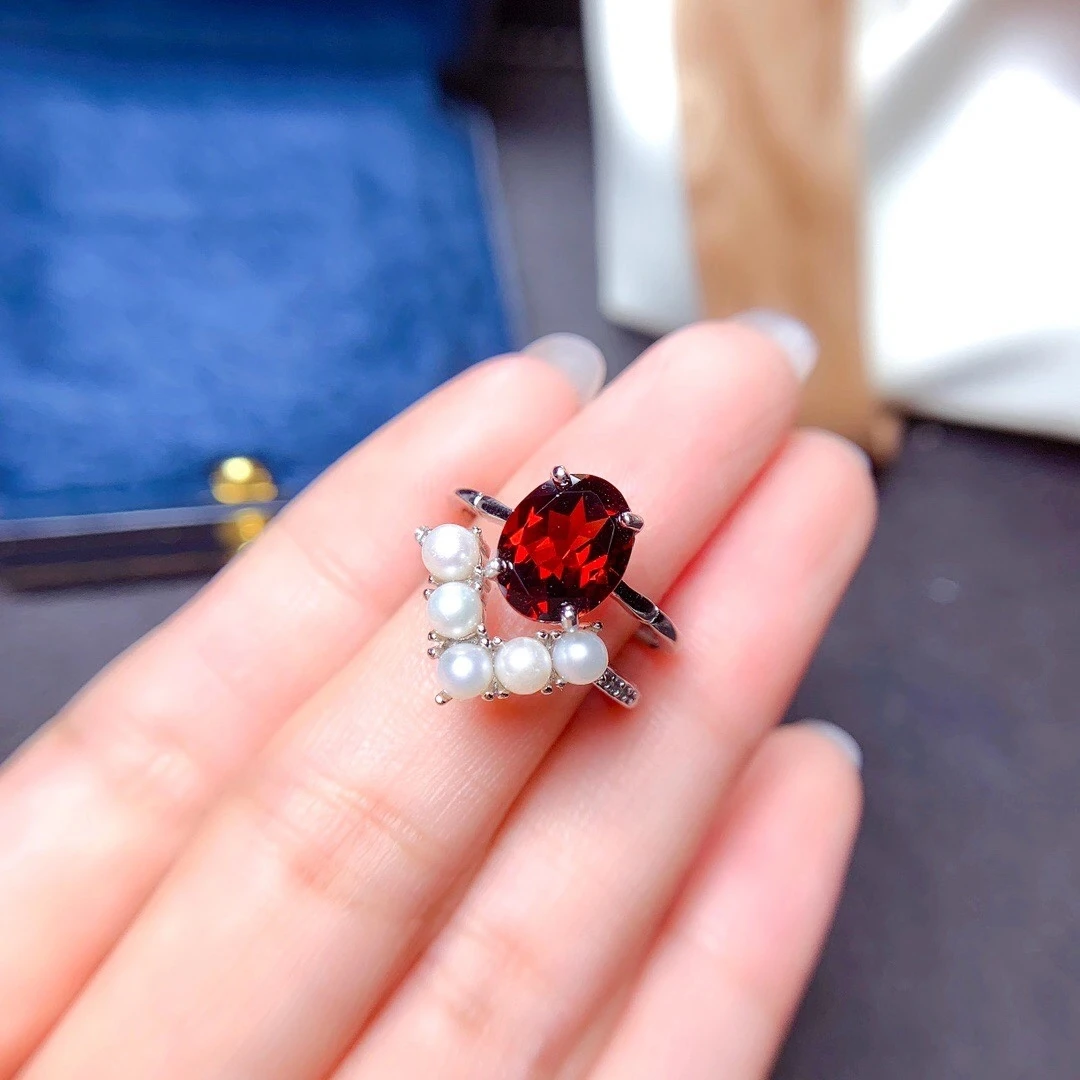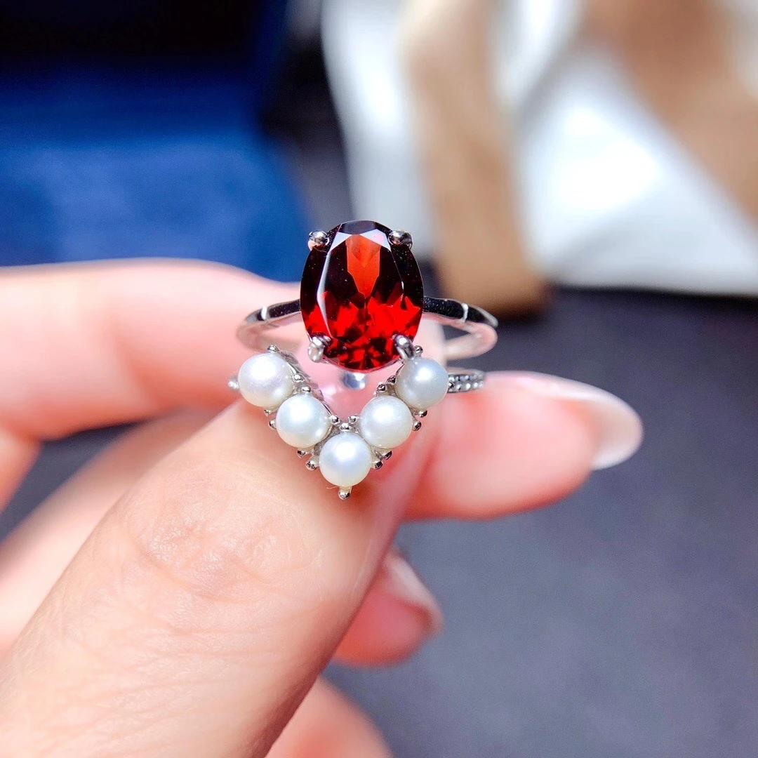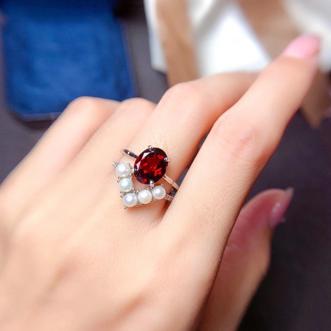 «MeiBaPJ Natural Red Garnet Pearl Gemstone Trendy Ring for Women Real 925 Sterling Silver Charm Fine Jewelry» по лучшей цене на рынке! Всего за 50$ (4750рублей)