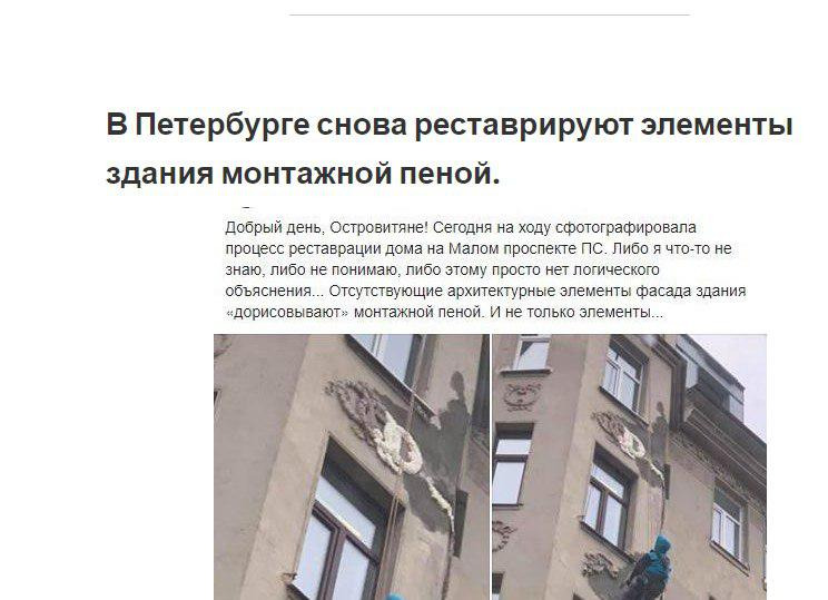 Глядя на такой "инновационный" подход к реставрации фасадов питерских сооружений, душа буквально уходит в пятки от восторга. Вспоминаются все поговорки про русскую смекалочку, а так же известная песня: