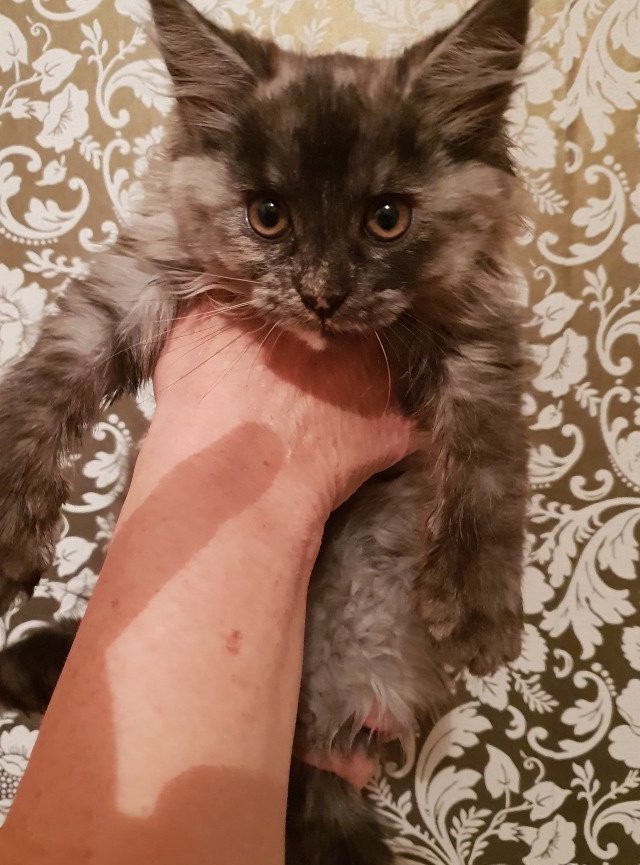 Котята мейн кун новорождённые появляются на свет уже с большим весом, чем обычные кошачьи детки других пород . Вес зависит от количества котят в окоте и от физического состояния кошки- матери .