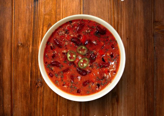 Мексиканский суп с фасолью - острый, с фаршем и добавлением какао . Блюдо с интересным внешним видом - густая консистенция ярко - красного цвета .