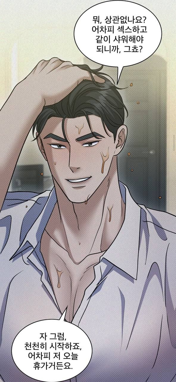 Ну, это же не имеет значение? Думаю мы займёмся сексом и примем вместе душ? Давай сделаем это медленно, у меня сегодня выходной