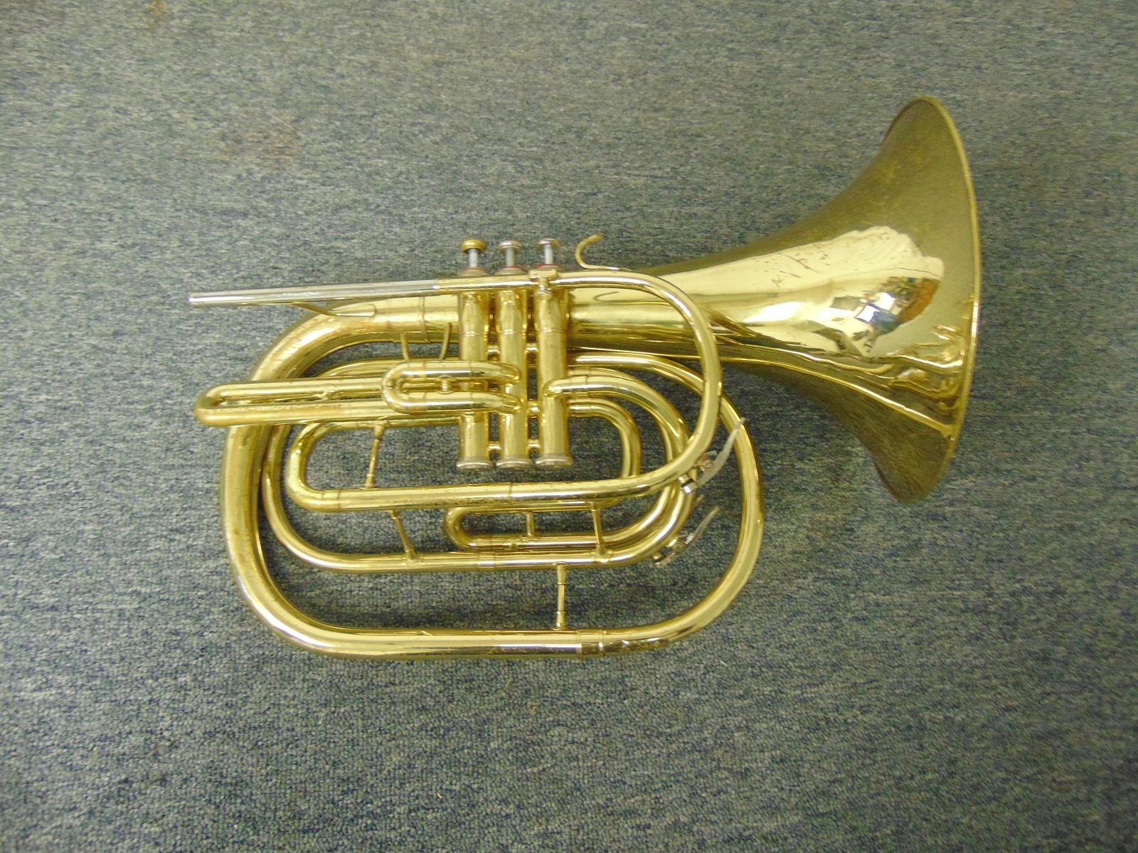 Мелофон — медный духовой инструмент . Практически не используется в качестве солирующего инструмента, заменяет валторну в маршевом оркестре . Имеет три вентиля и аналогичную с валторной аппликатуру, но чуть меньшую длину трубки .
