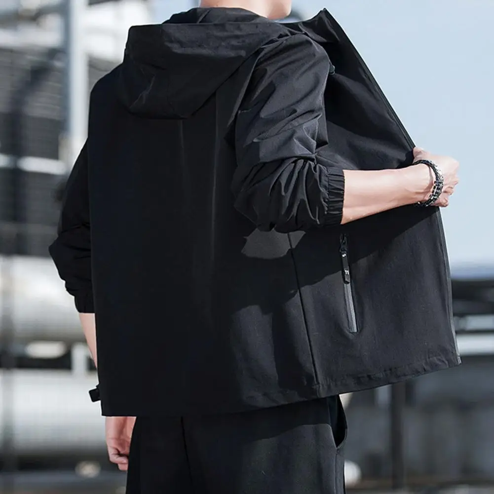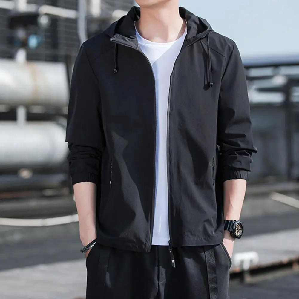 kgUzJJiaHere you can buy Men Fall Outerwear Versatile Men's Hooded Cardigan Smooth Pure Color Coat with Drawstring Pockets Elastic Cuff Zipper for Fall with free delivery to your post office.