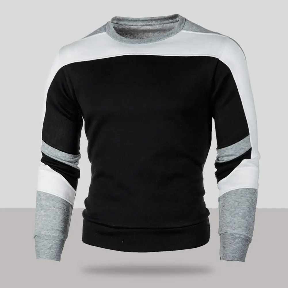GsmjpkQPbHere you can buy Men Fall Spring Sweatshirt Color Matching Round Neck Long Sleeve Patchwork Elastic Soft Pullover Slim Fit Men Mid Length Top with free delivery to your post office.
