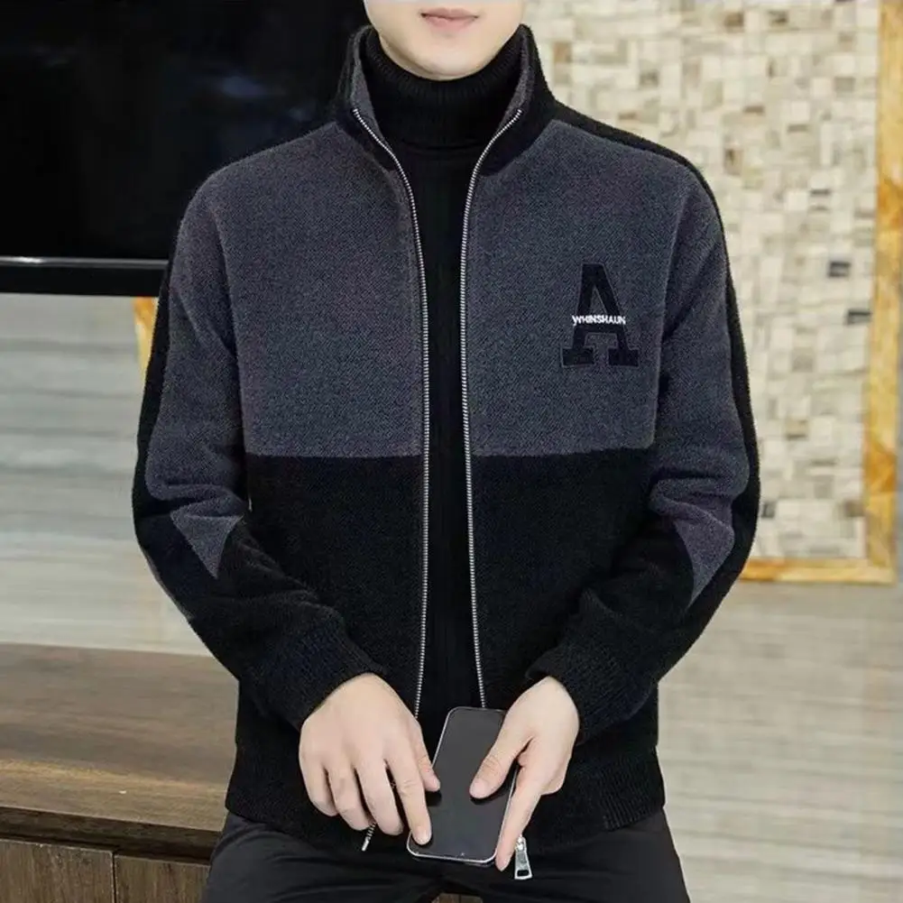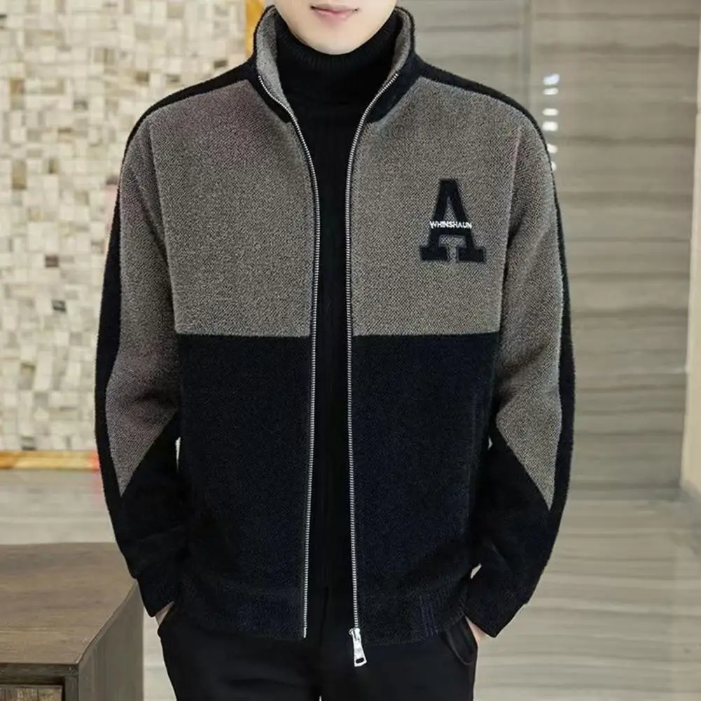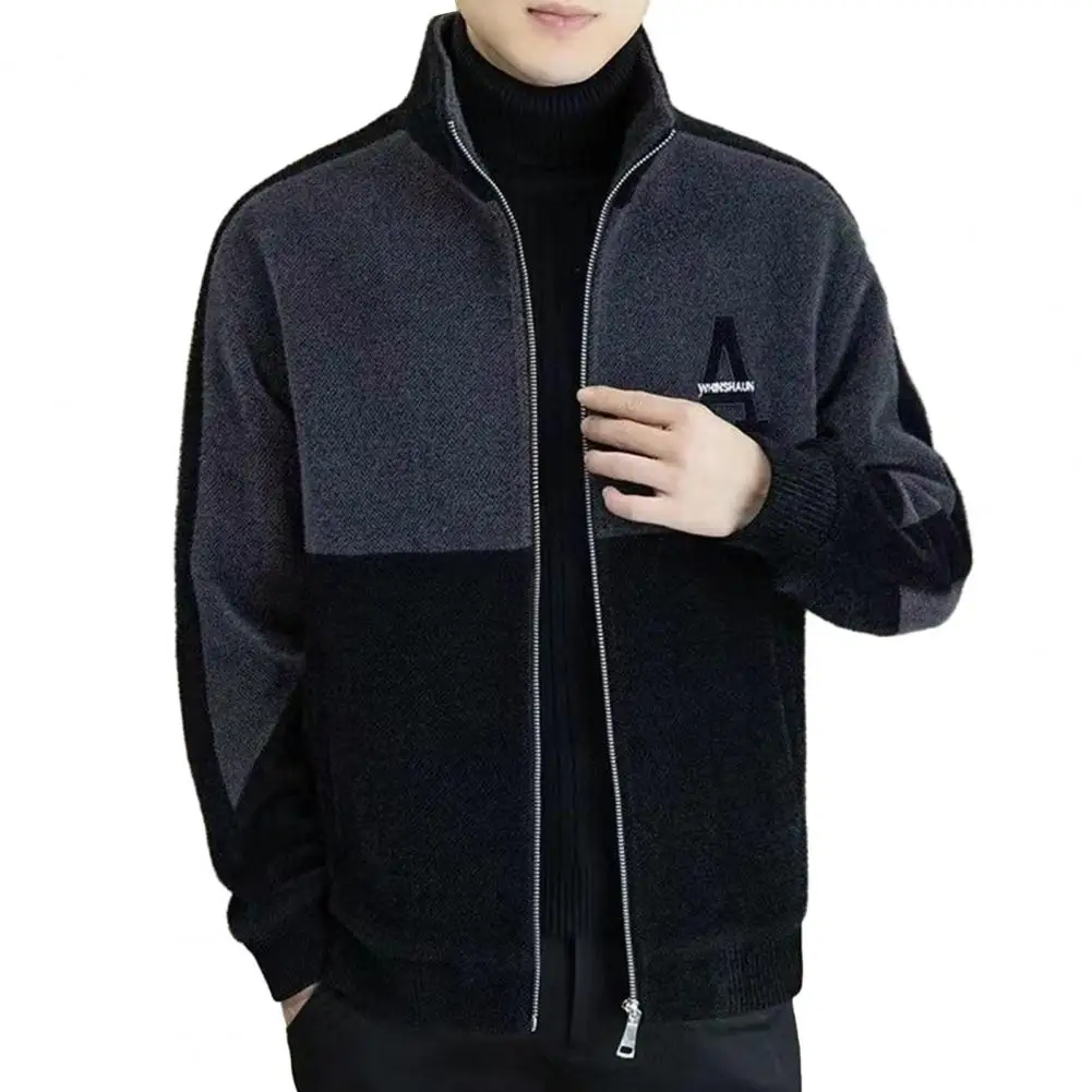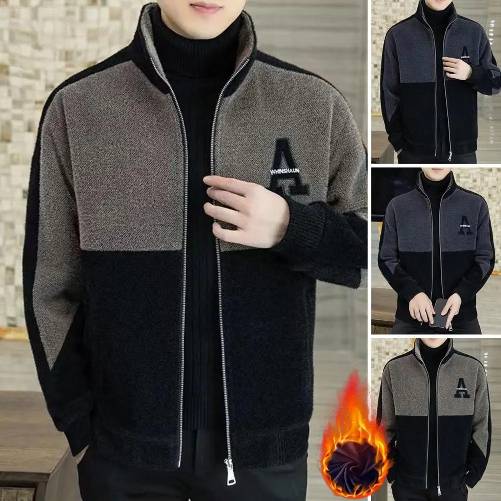 aKHbtXinQHere you can buy Men Fall Winter Coat Color Matching Thick Warm Stand Collar Neck Protection Soft Zipper Closure Cardigan Men Long Sleeve Jacket with free delivery to your post office.