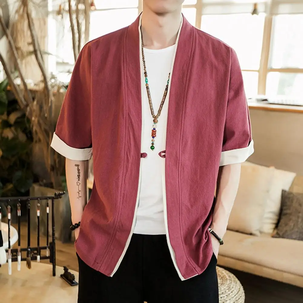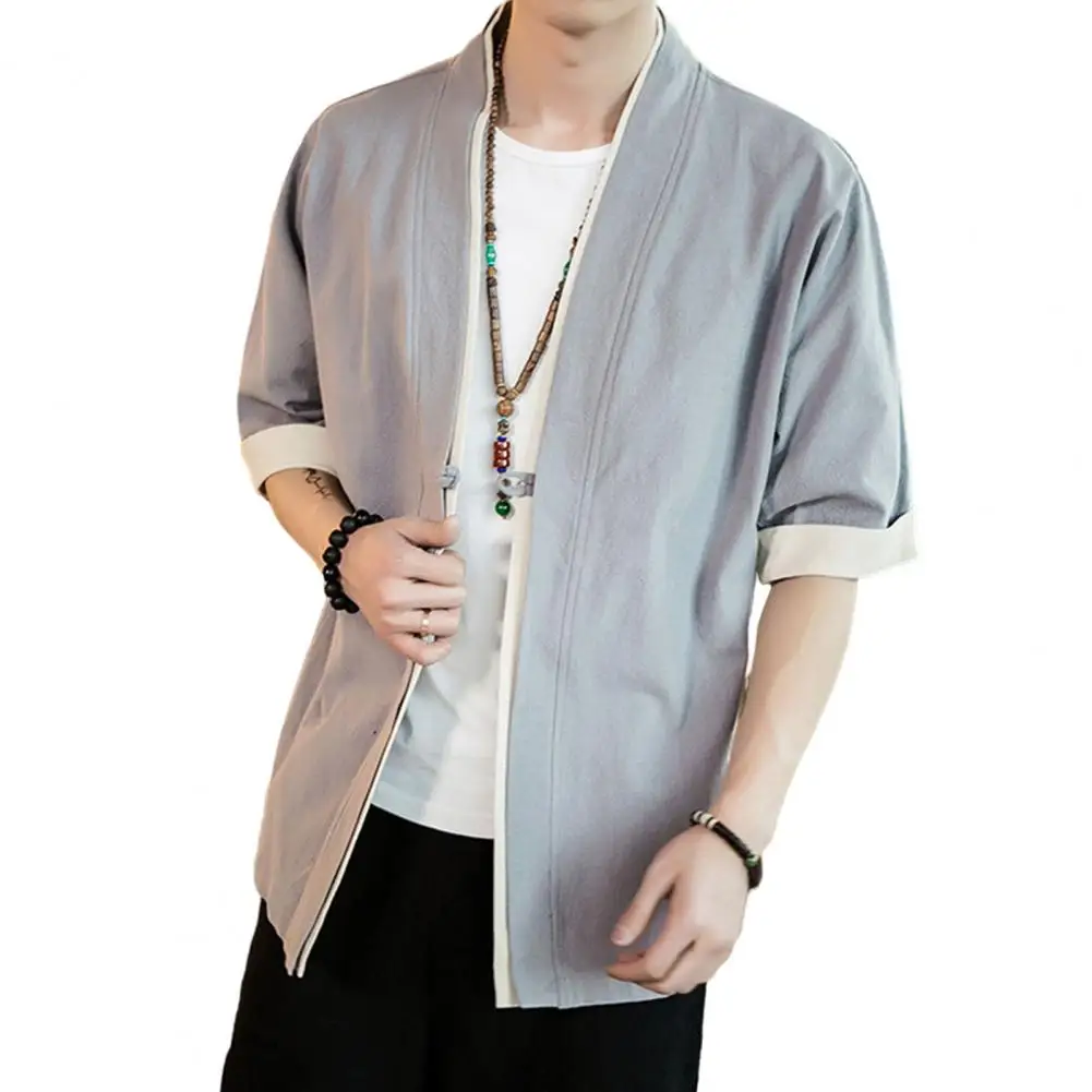 Men Fashion Jacket Stylish Men's Mid-sleeved Cardigan Coats Retro Design Soft Polyester Fabric for Comfortable Spring Wear Color - Купить с бесплатной доставкой