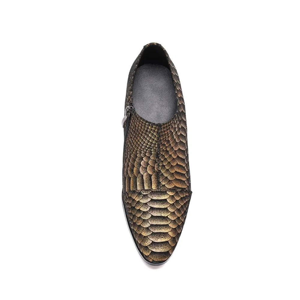 "Men Leather Business Boots Vintage Casual Classic Pointed Toe High Heels Zipper Python Pattern" * Buy Now Just For 77$
