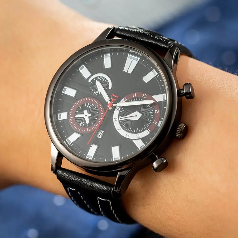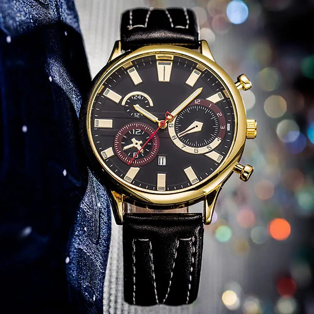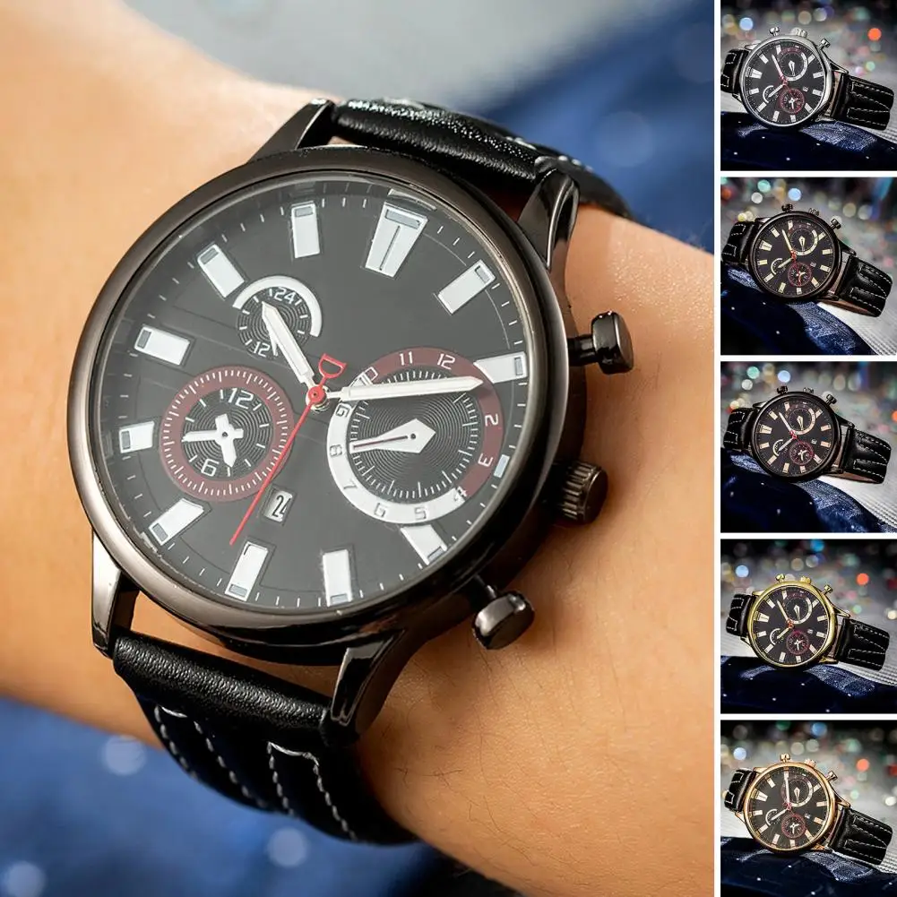 gVmAAenmVHere you can buy Men Watch Battery Operated Round Dial High Precise Wear-Resistant Faux Leather Calendar Display Function Quartz Movement Watch with free delivery to your post office.