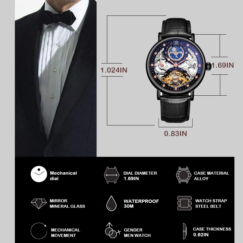 "Men Waterproof Explorer Mechanical Watches Top Brand Moon Dial Retro Automatic Watch Self-Wind Leather Tourbillion Watch Male" * Buy Now Just For 54$