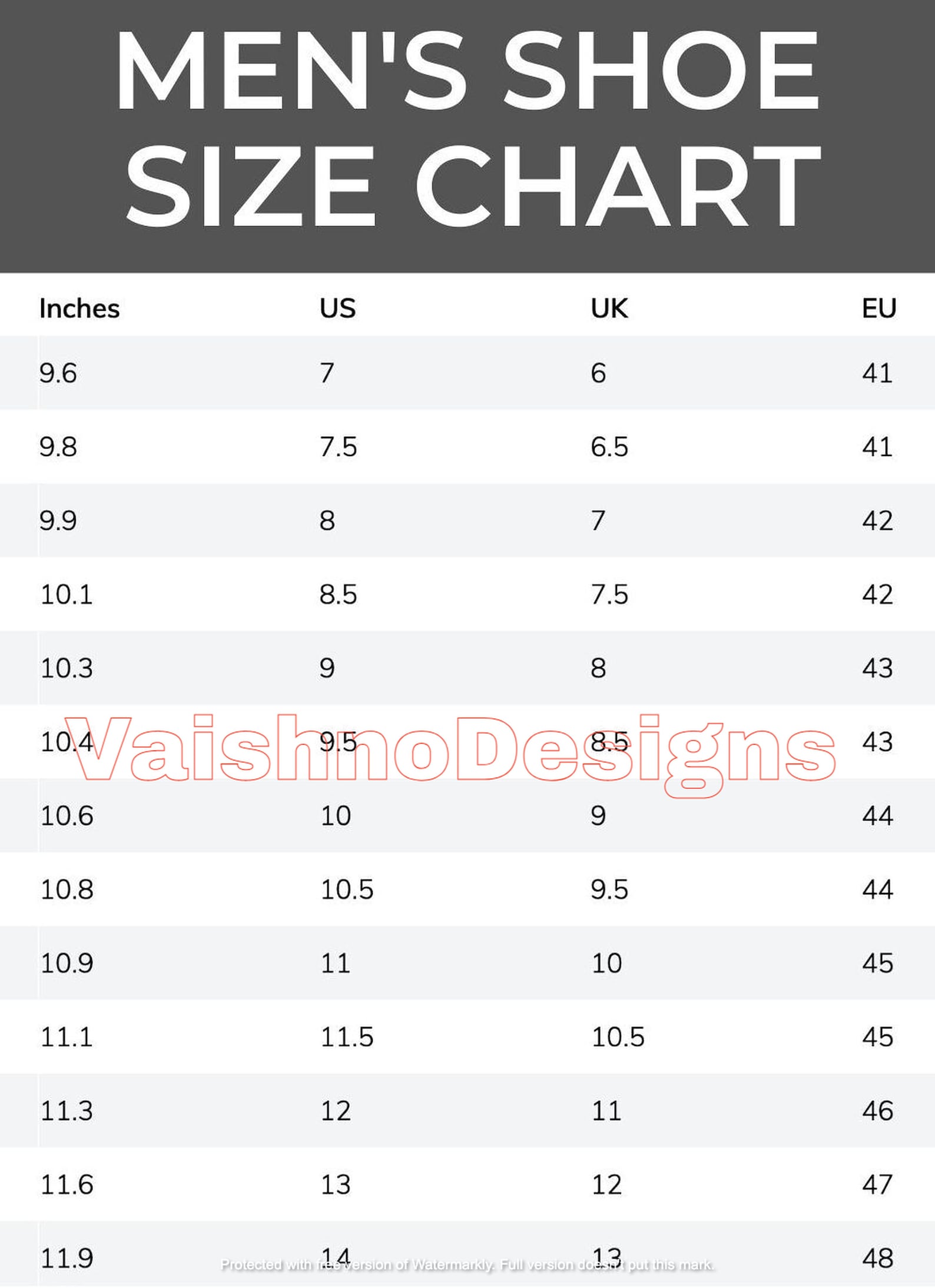 Men shoe size