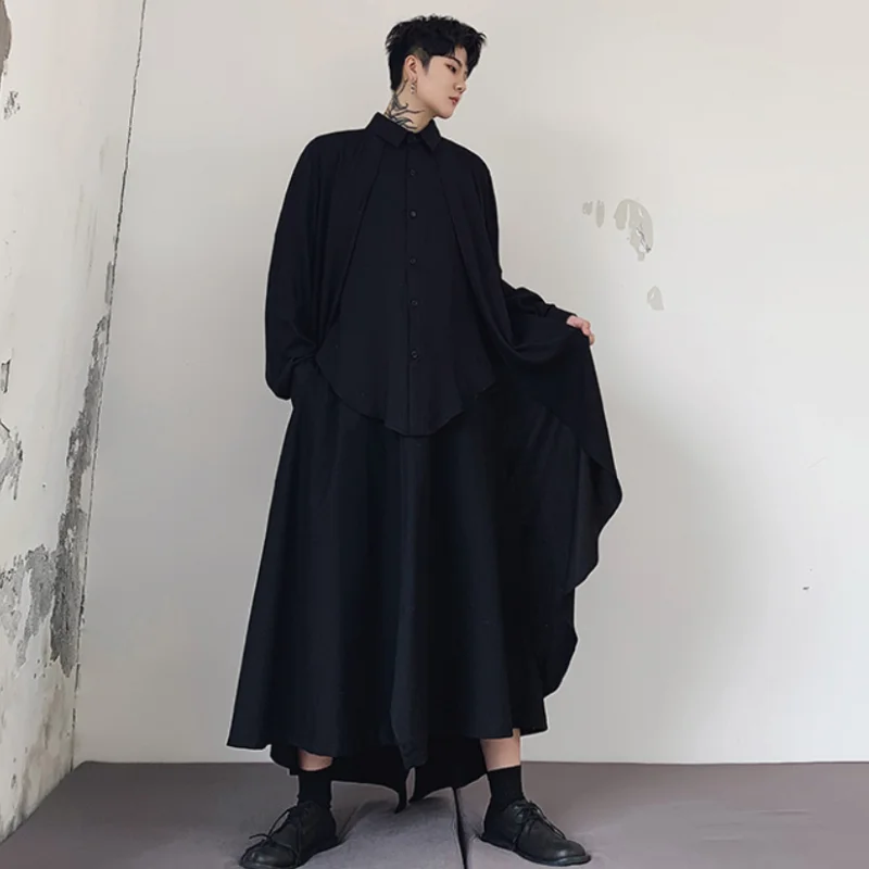 "Men's Long-Sleeve Shirt Spring And Autumn New Irregular Personality Design Hip Hop Stage Casual Loose Large Size Shirt" * Buy Now Just For 45$