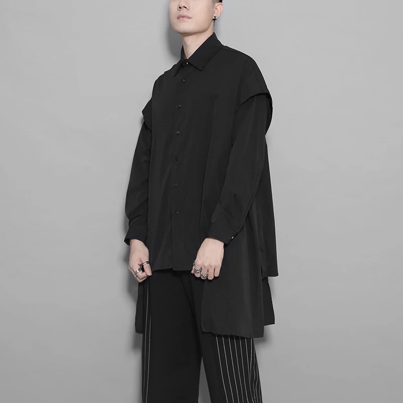 "Men's Short Front And Long Back Stitching Long Sleeve Shirt Autumn Solid Color Solid Cut Stitching Loose Shirt" * Buy Now Just For 42$