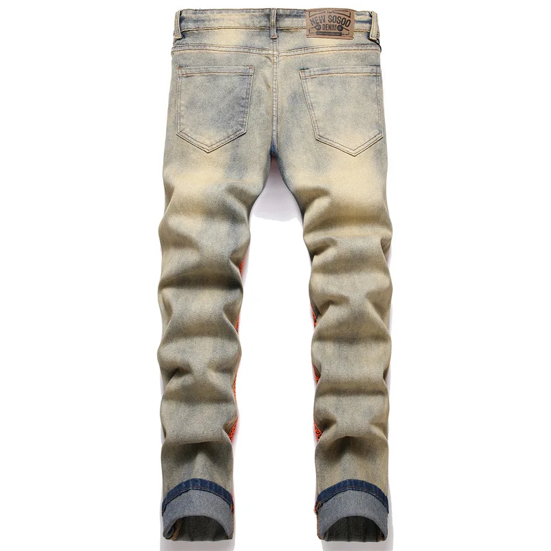 "Men's Spider Web Embroidered Jeans Cross Micro Chapter High Elastic Rainbow Thread Running Pants 3D Tight Wool Zipper Slim Fit 2" * Buy Now With Free Shipping Just For $29