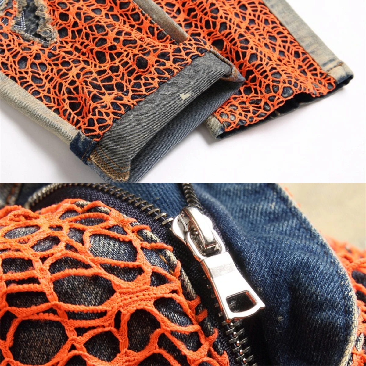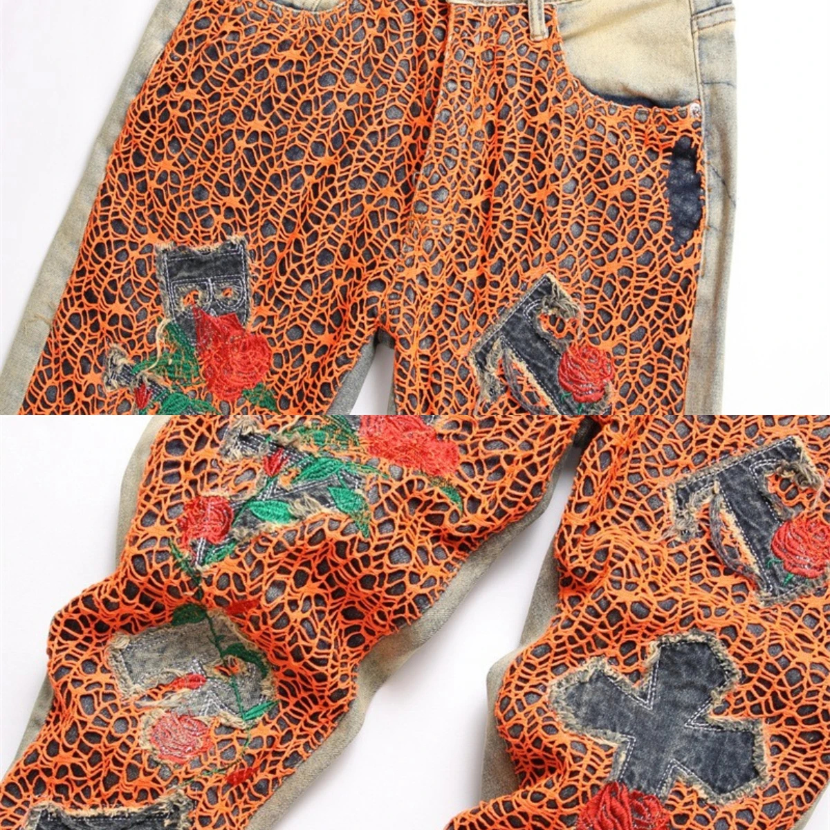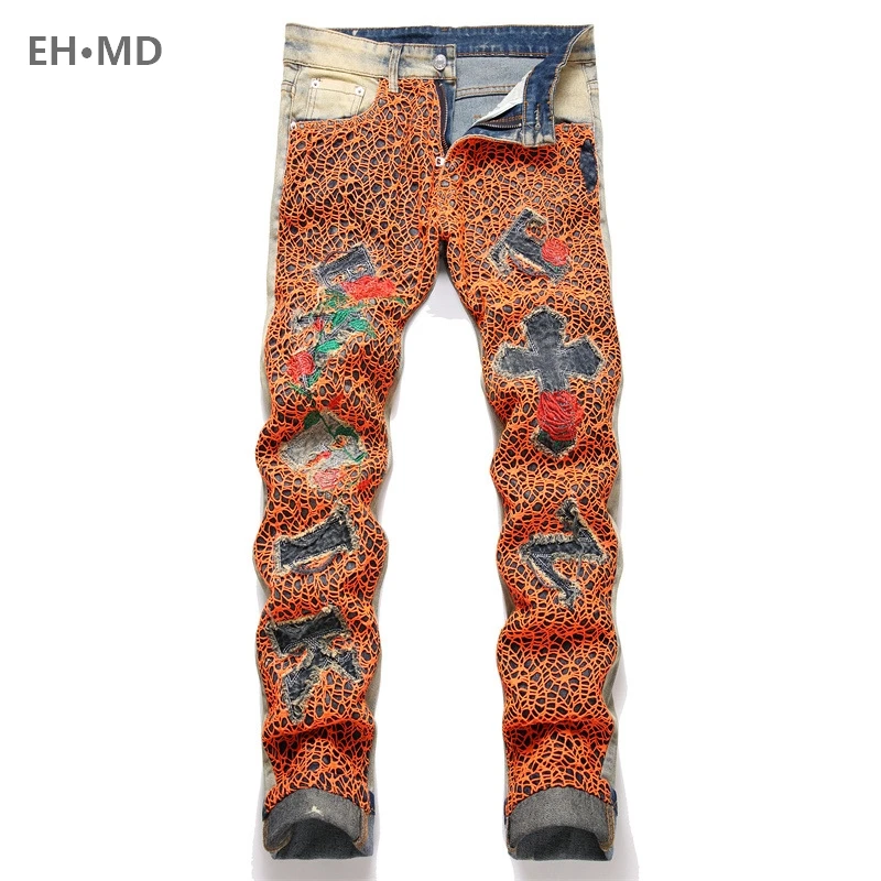 ciIWuCysIpHere you can buy Men's Spider Web Embroidered Jeans Cross Micro Chapter High Elastic Rainbow Thread Running Pants 3D Tight Wool Zipper Slim Fit 2 with free delivery to your post office.