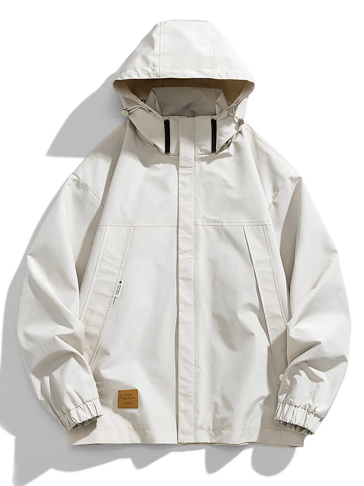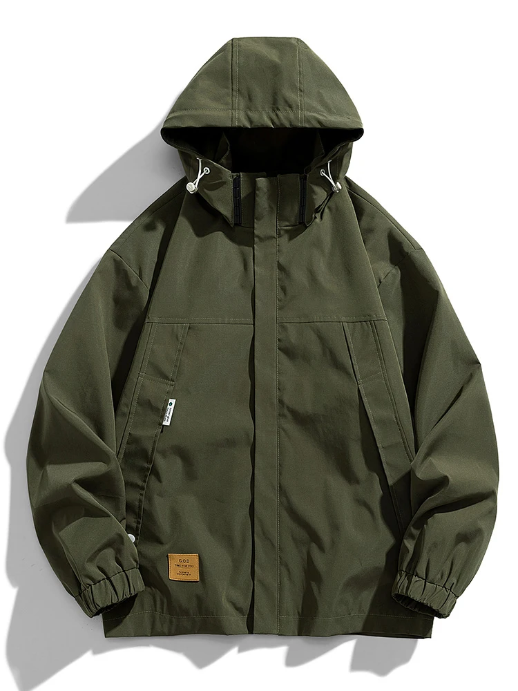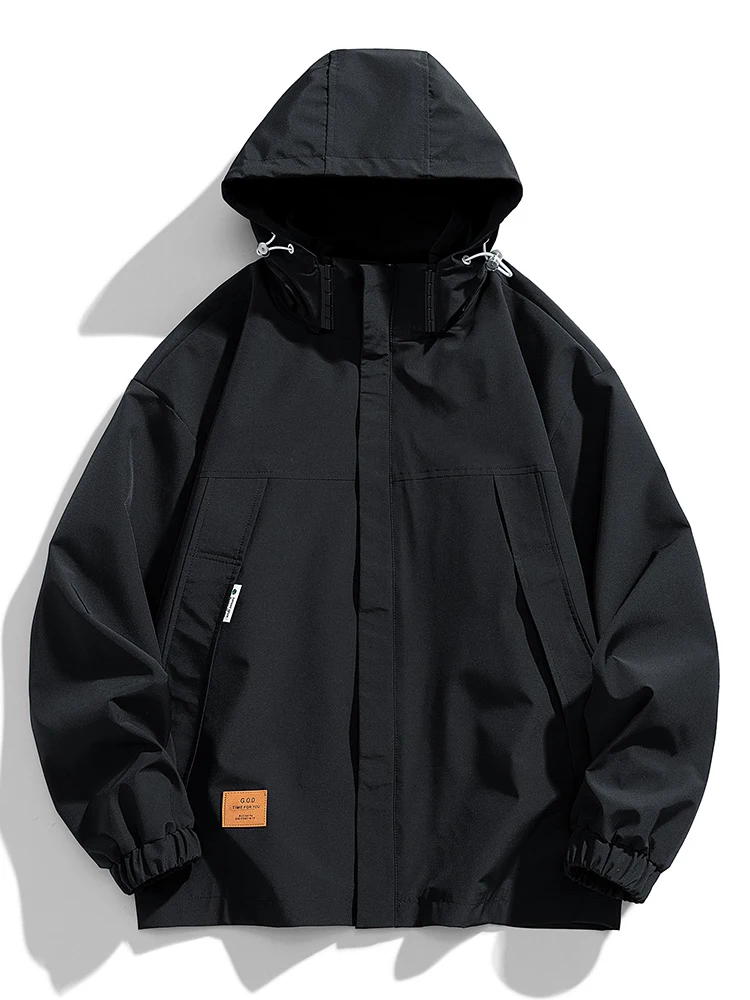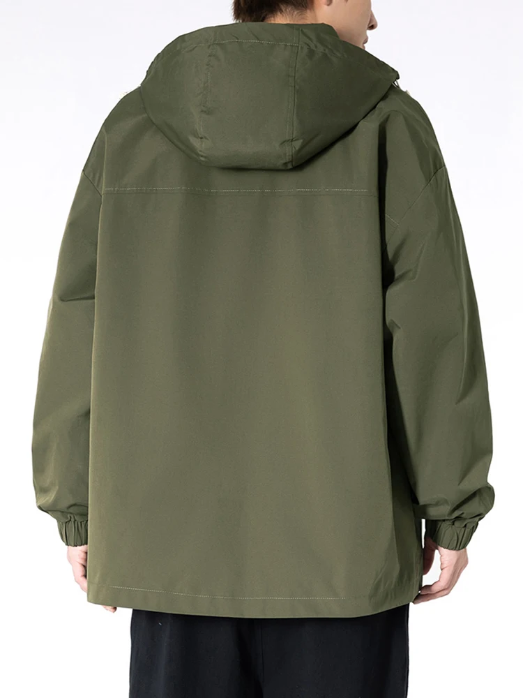 Men's Spring and Autumn Zipper Pocket Hooded Versatile Loose Jacket Elastic Drawstring Solid Color Windproof Coat Large 9XL Tren - Купить с бесплатной доставкой