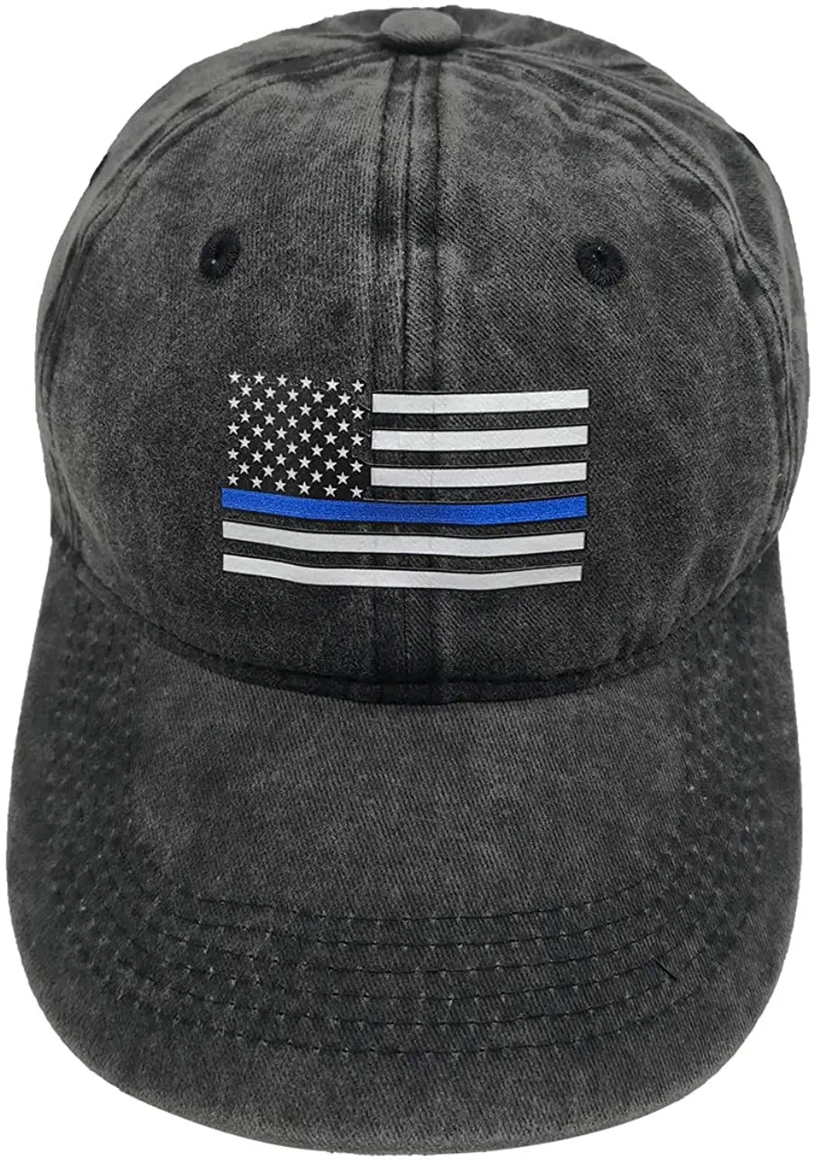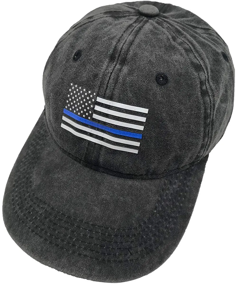 "Men's USA American Flag Baseball Cap Washed Distressed Cotton Adjustable Thin Blue Line Hat" * Buy Now Just For 4$