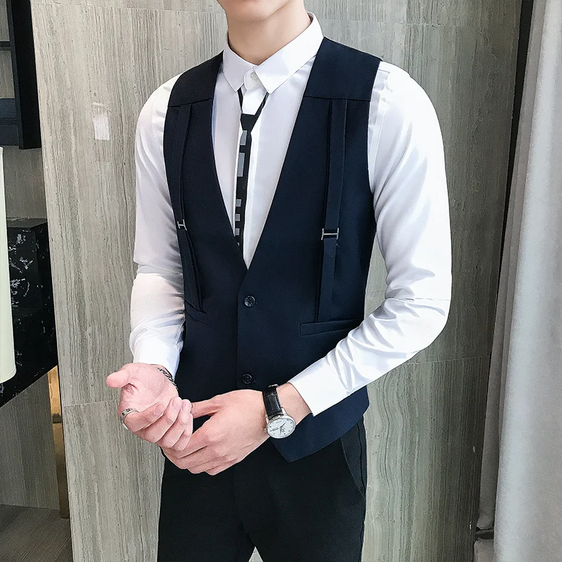 Mens Vest,Vest Man Dress,Korean Version Of Men's Vest, Volid Color, Button Access Control, Pocket Decoration, Four Colors, M-5XL