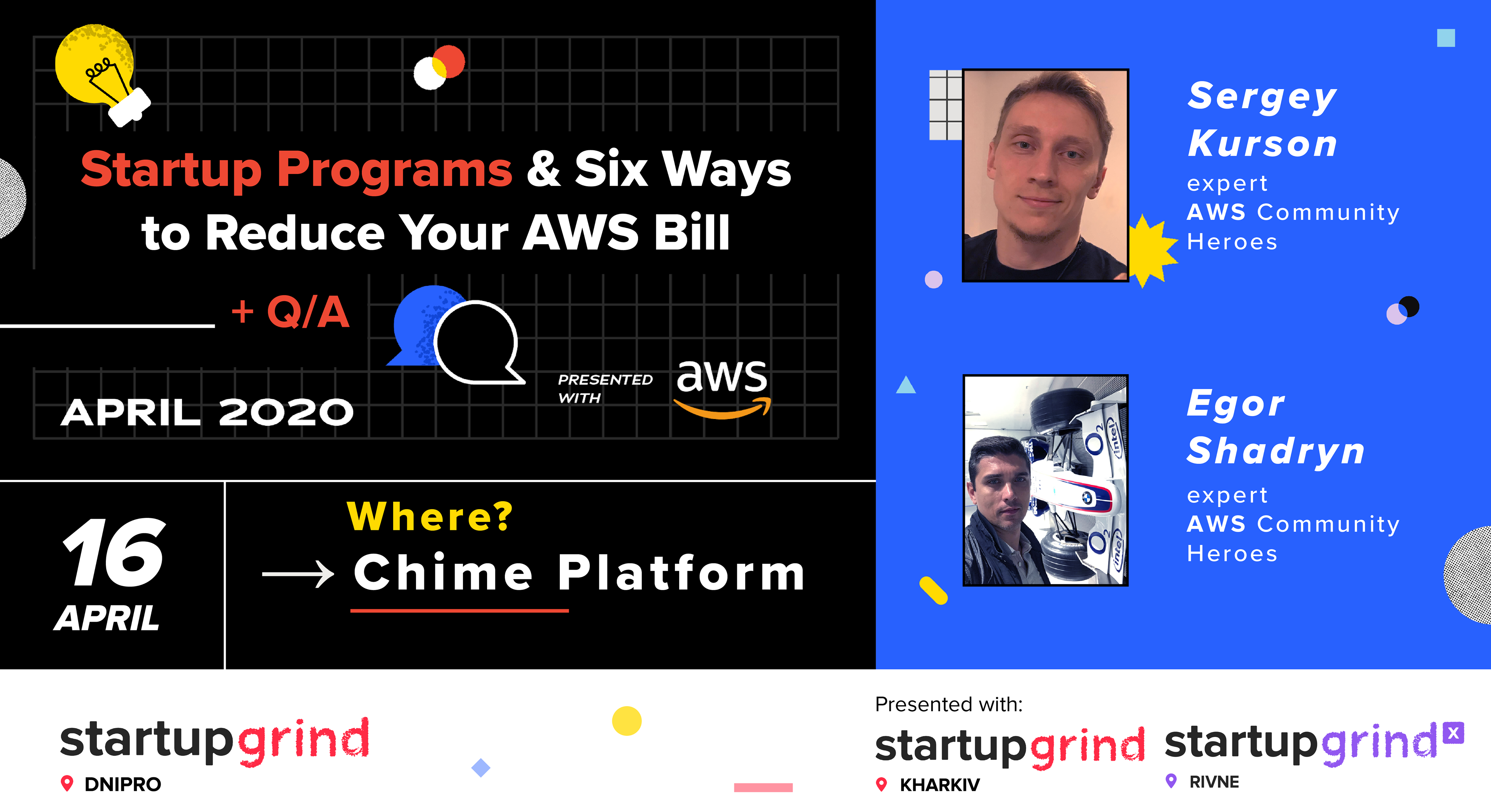 🔥Серия партнерских ивентов в апреле от AWS в Украине проводится совместно Startup Grind Kharkiv, Startup Grind Dnipro, Startup Grind Rivne