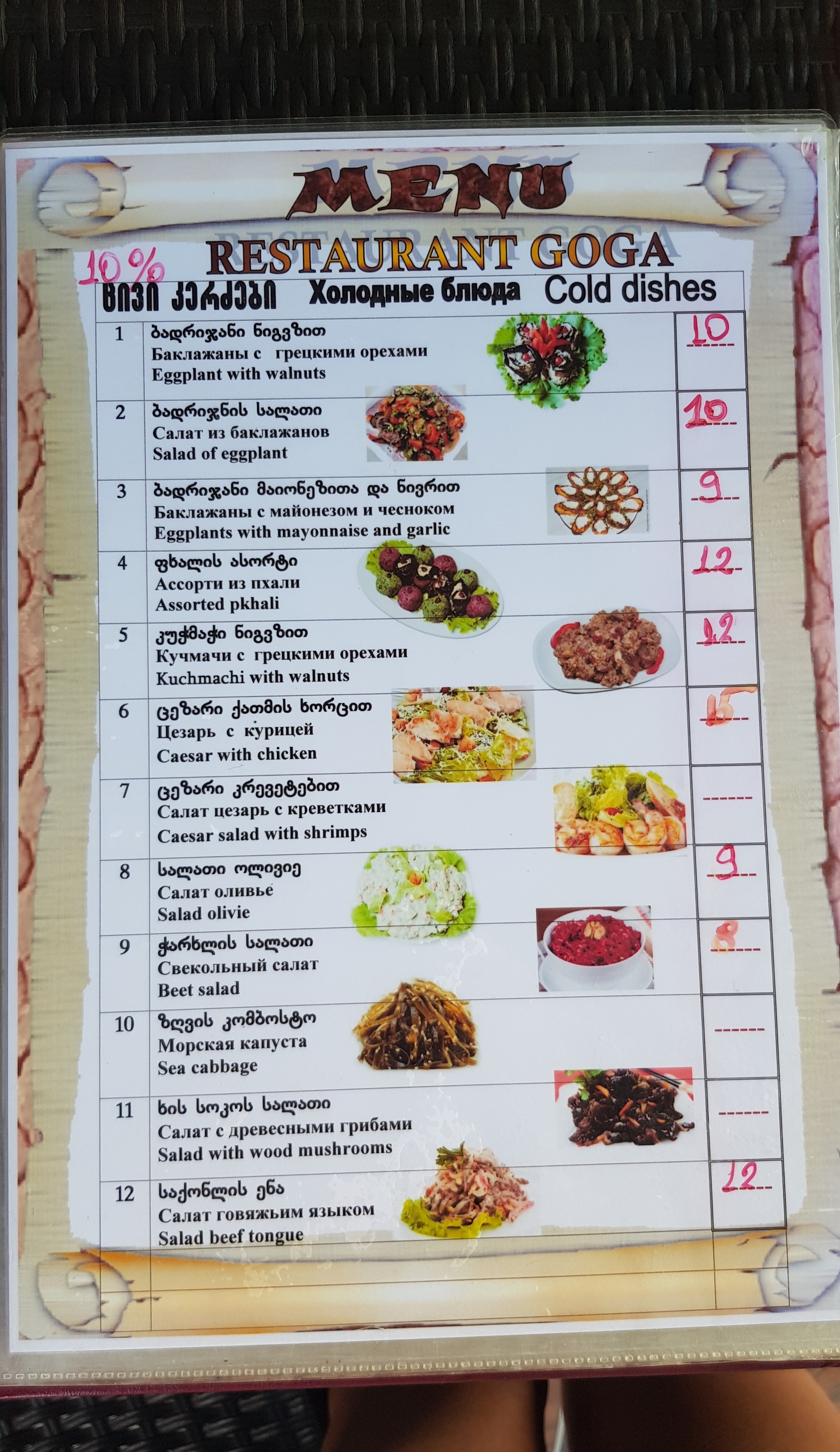 Меню Гога