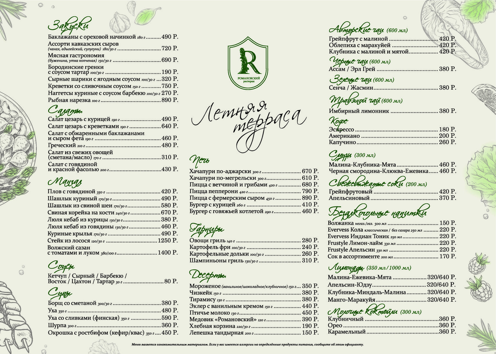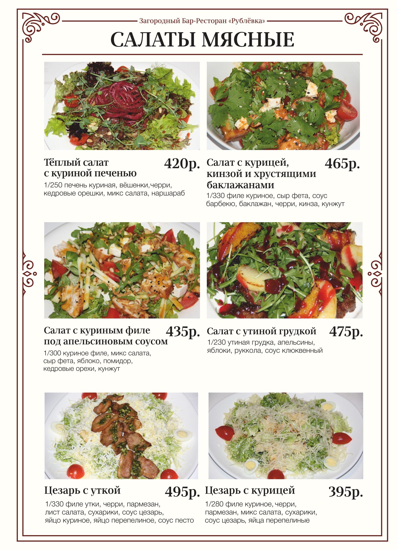 Меню Ресторана С Ценами И Фото
