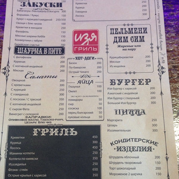 Меню изи москва