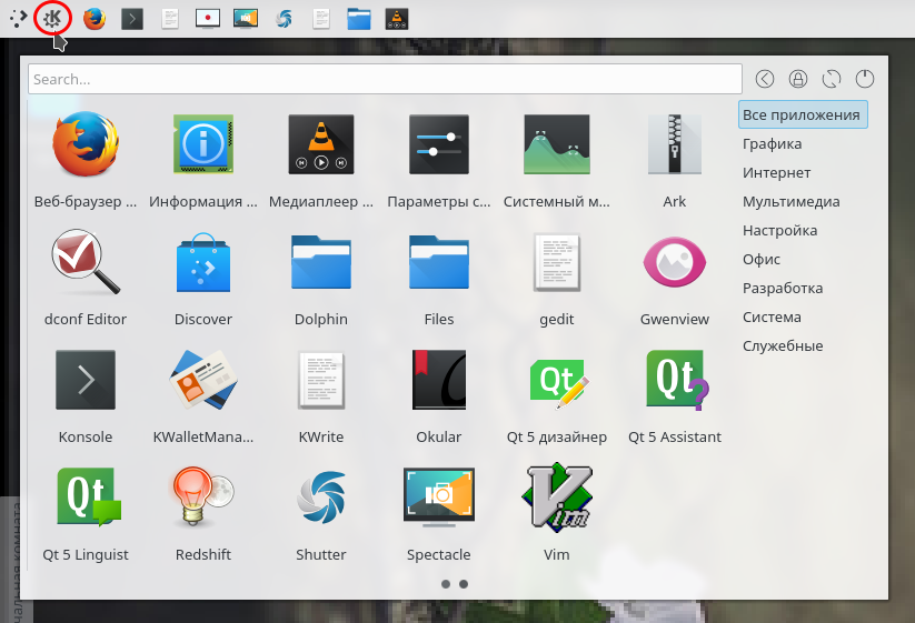 Меню kde