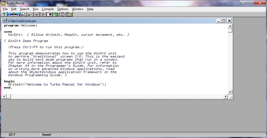 Меню паскаля