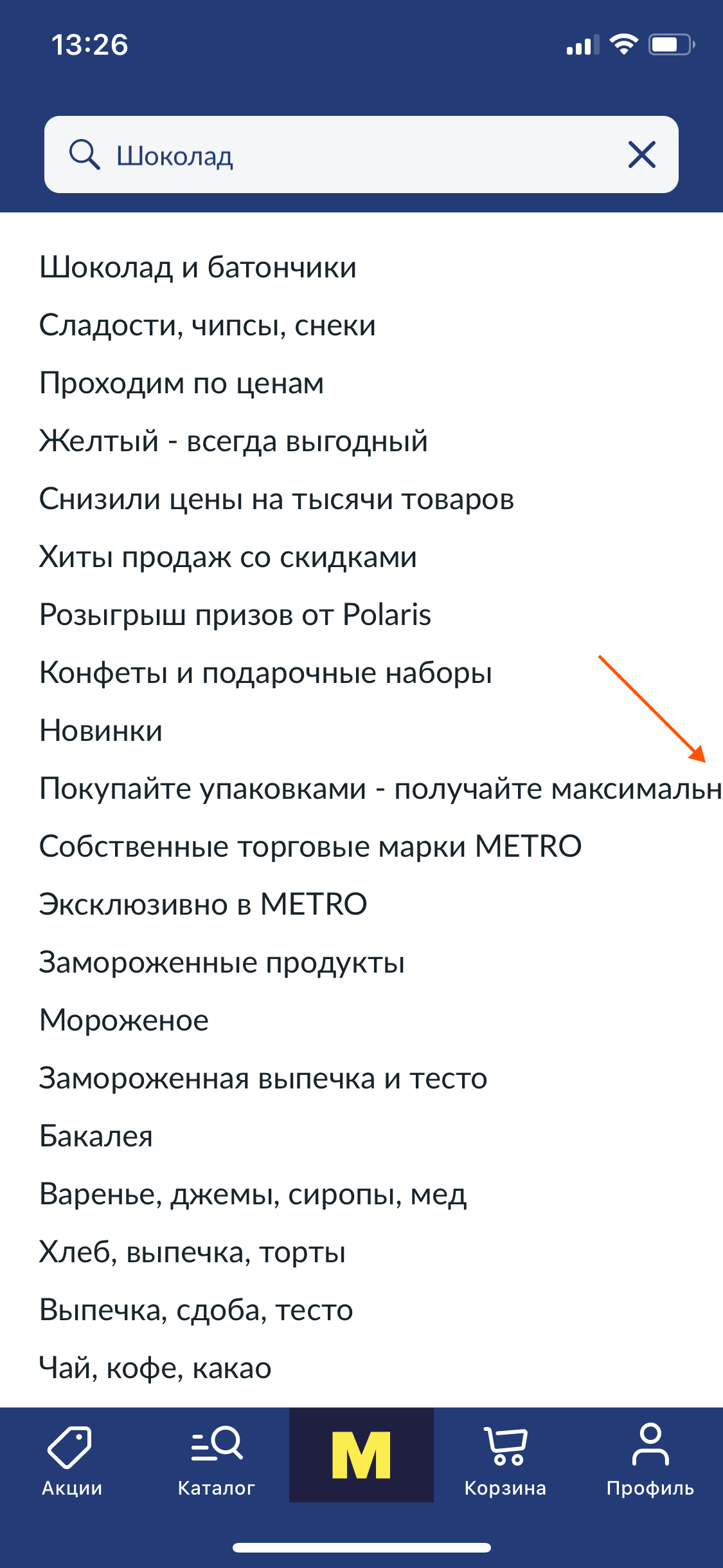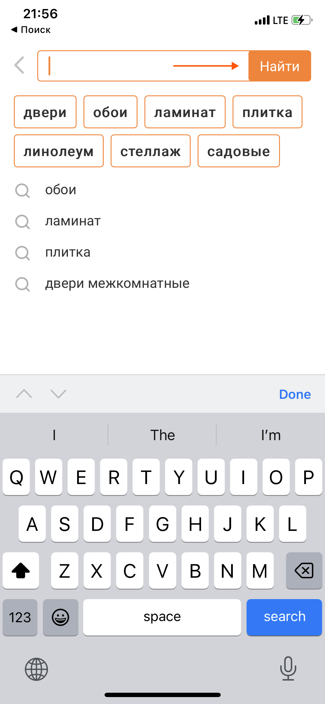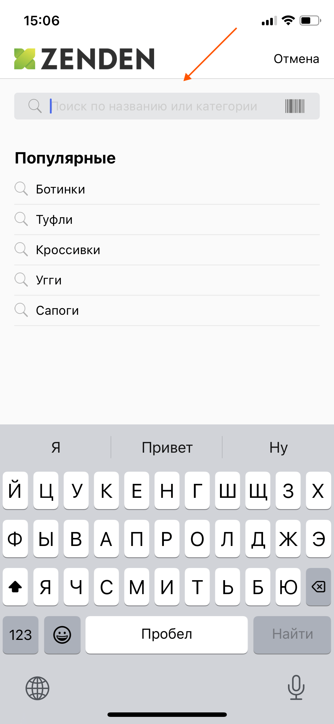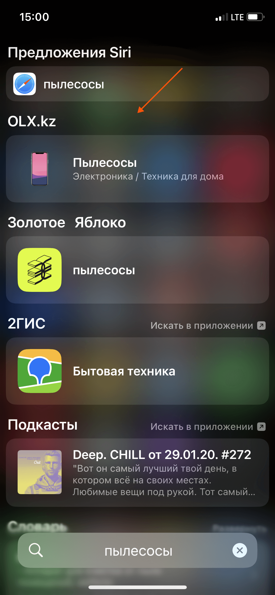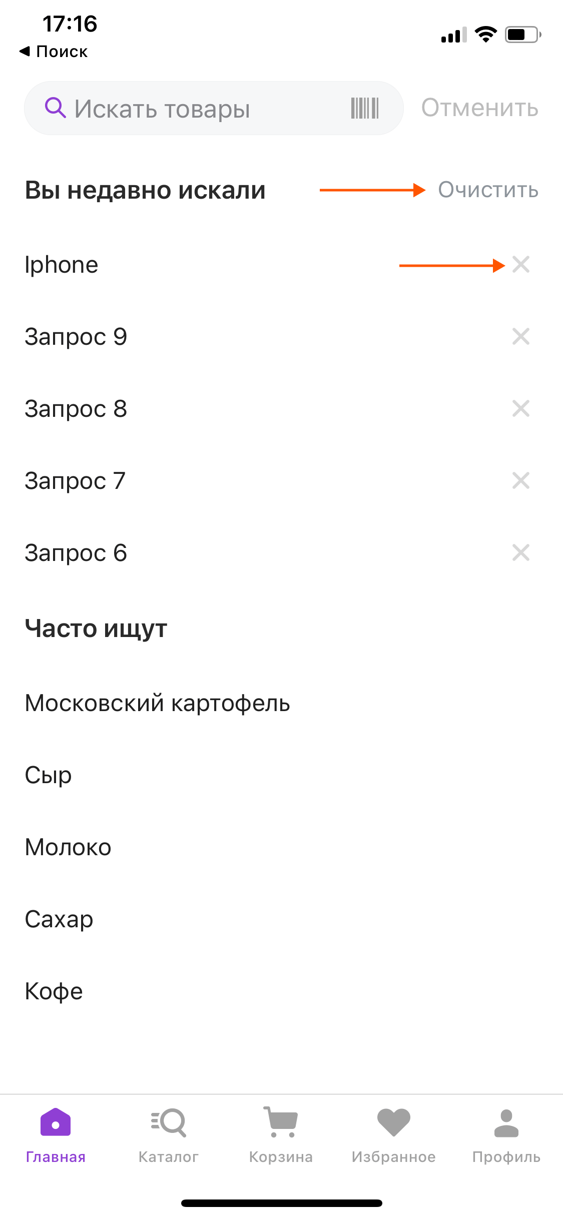 Меню поисковой строки