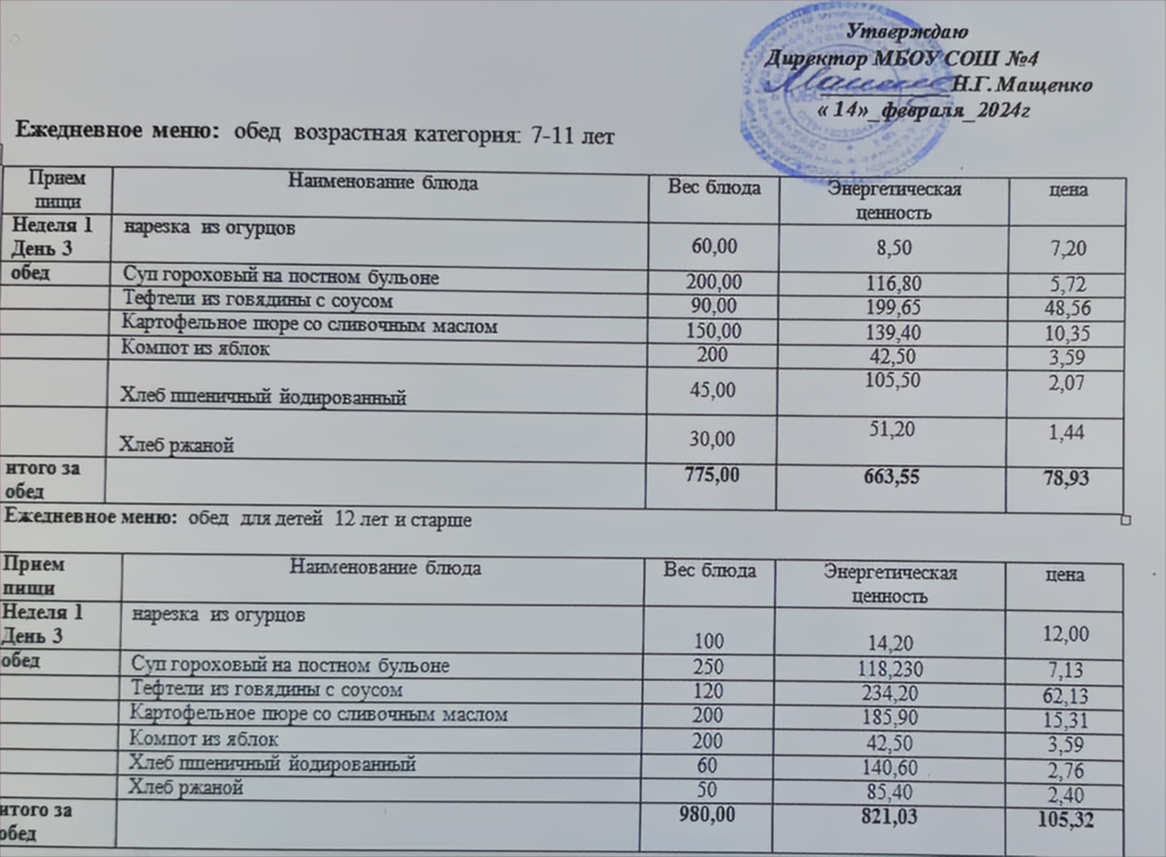 Меню школа 1000 141 фото