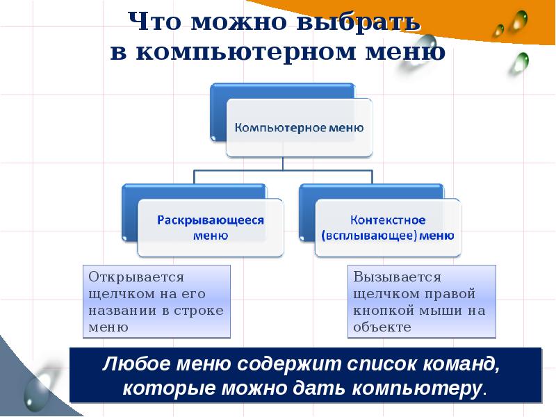 Меню содержащее список команд относящихся 106 фото