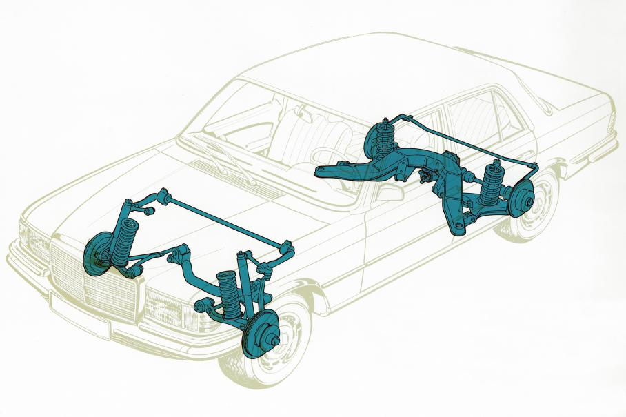 Ходовая часть W116 имеет независимую подвеску на всех колесах, что обеспечивает отличную управляемость и комфорт.