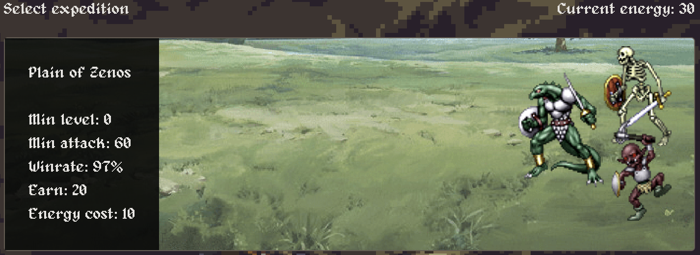 7. Всё, теперь мы готовы идти в бой! Надо выбрать экспедицию (бой), в которой будем участвовать. Изначально доступна только первая