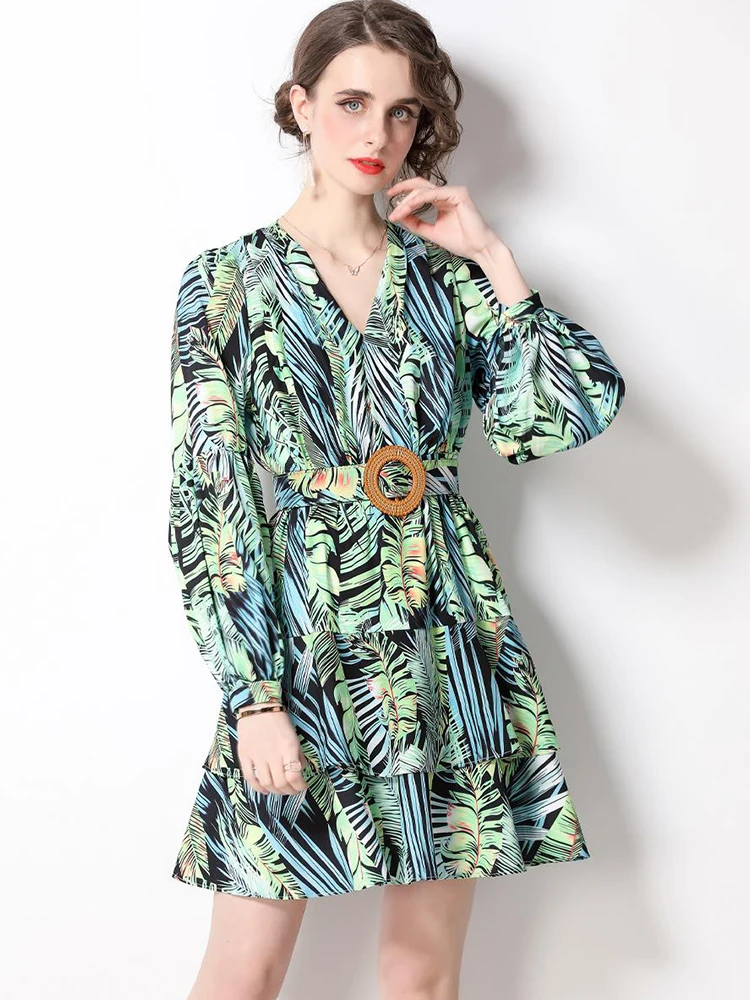 «Merchall 2022 Spring Runway Bohemain Green Dress Women V-Neck Long Lantern Sleeve Floral Print Cascading Mini Dress M1864» по лучшей цене на рынке! Всего за 26$ (2470рублей)