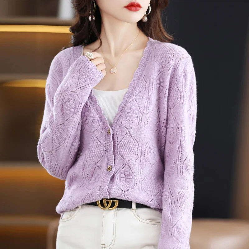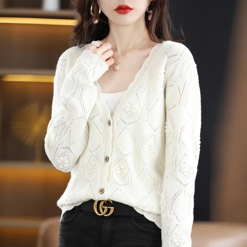 bjovsLjbДолго искали Merino Wool V-neck Lace Hollowed Out Hook Flower Knitted Cardigan Women's Spring And Autumn New Solid Color Short Sweater Jacket, но не могли найти? Предоставляем вашему вниманию Merino Wool V-neck Lace Hollowed Out Hook Flower Knitted Cardigan Women's Spring And Autumn New Solid Color Short Sweater Jacket по лучшей цене на рынке!