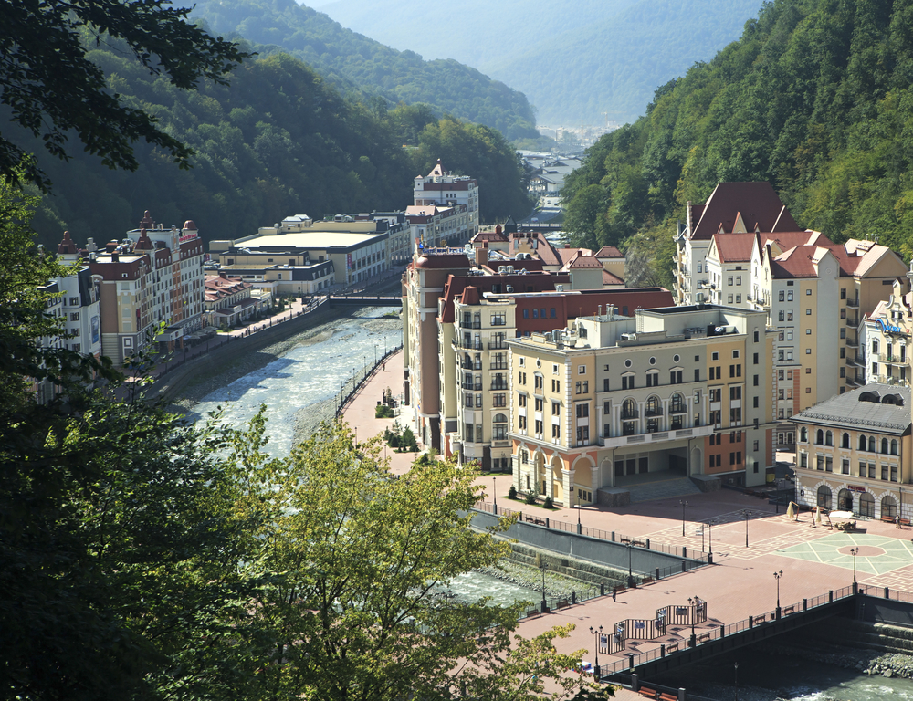 Меркур ,как Меркур, . . . Горнолыжный курорт Роза Хутор . Ski Area . Олимпийская ул ., 35 . 9 .4 "Fantastic place for relaxing time . There is a small lake with artificial beach to sunbathe, many cafes and restaurants and lift up to the mountain .