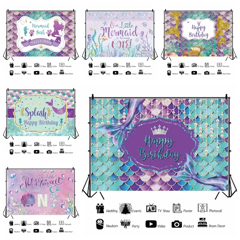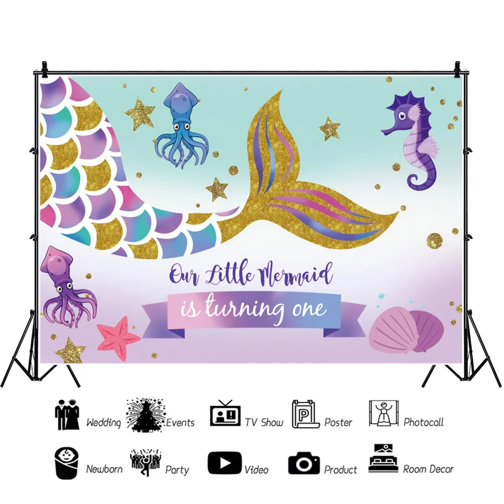 «Mermaid Princess Backdrops Photography Baby Girl Birthday Glitters Mermaid Tail Photocall Seabed Shell Backgrounds» по лучшей цене на рынке! Всего за 6$ (570рублей)