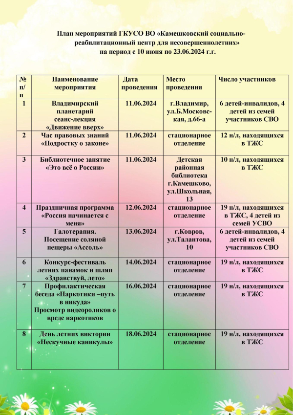Мероприятия планы году детства