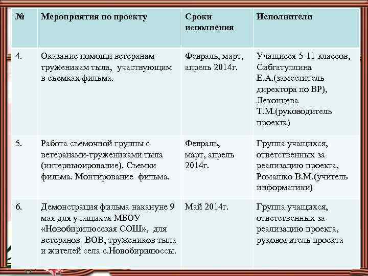 Мероприятия срок исполнения исполнители 104 фото