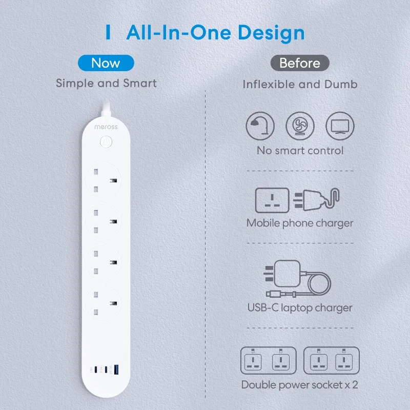 eDkmHNDfyYHere you can buy Meross HomeKit Smart Fast Charging Power Strip with 4 Sockets and USB-A/C Port 65W UK version Support Alexa Google Assistant with free delivery to your post office.