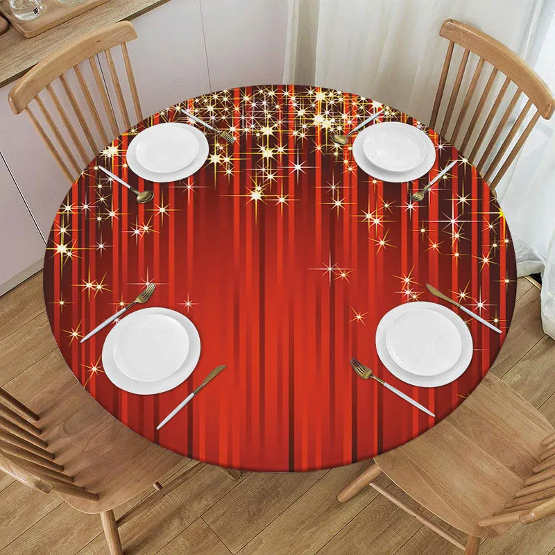 Merry Christmas Round Fitted Tablecloth Happy New Year Elastic Edged Waterproof Table Cloth Dining Table Decorations Accessorie - Купить с бесплатной доставкой