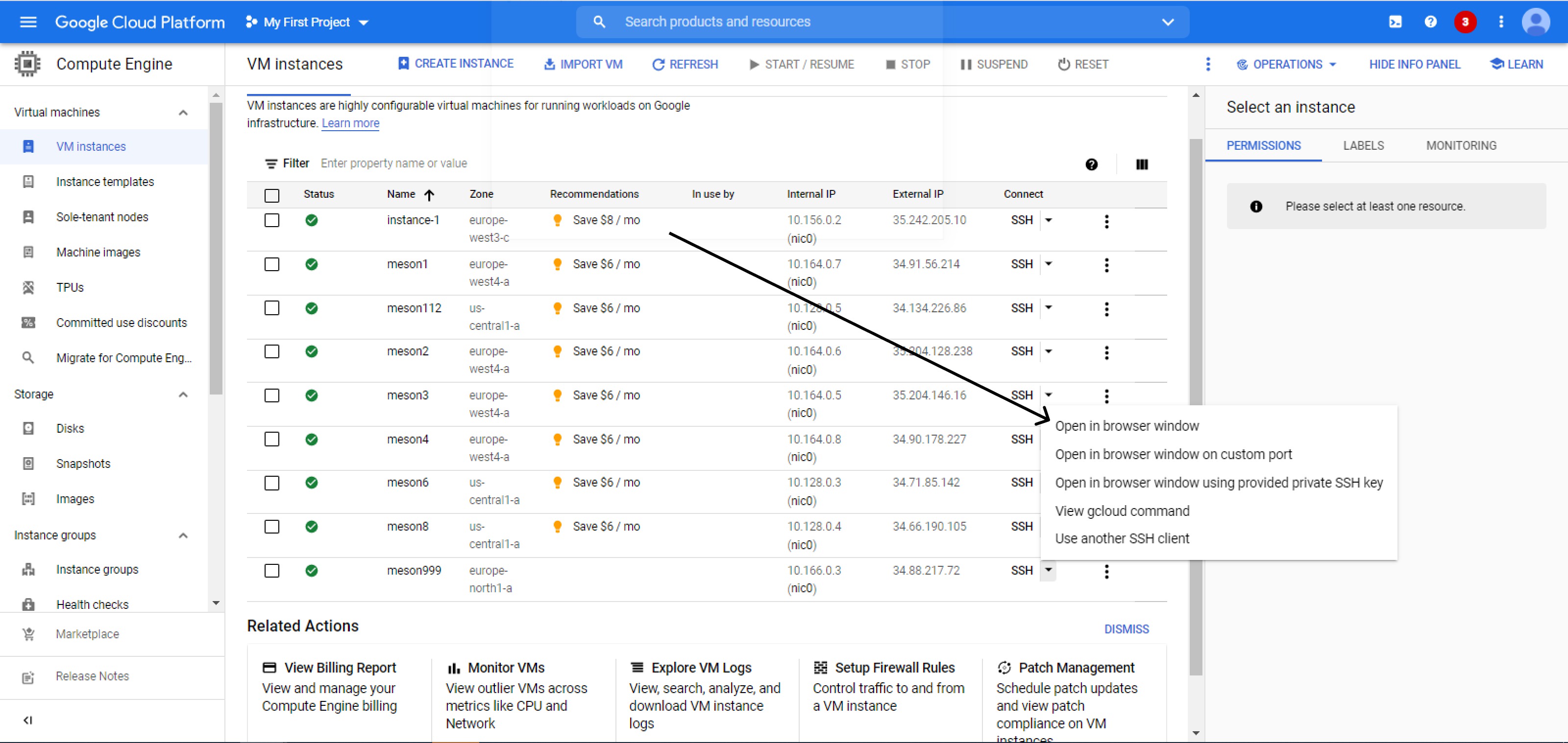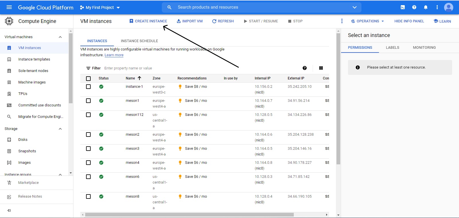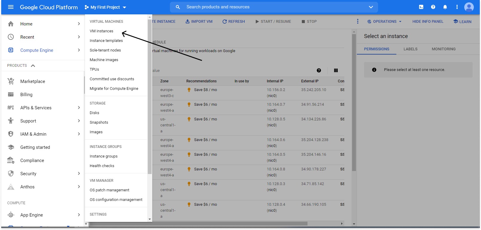 Computer Engine >>> VM instances