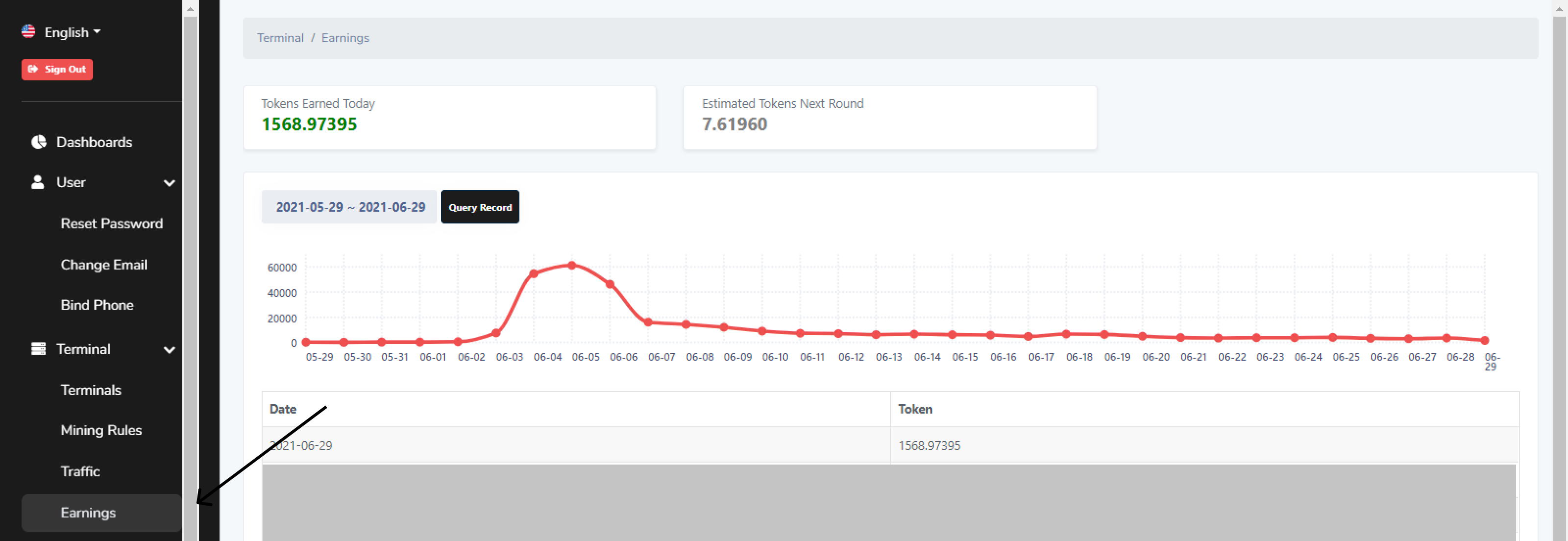 Проверяем начисления в разделе Earnings