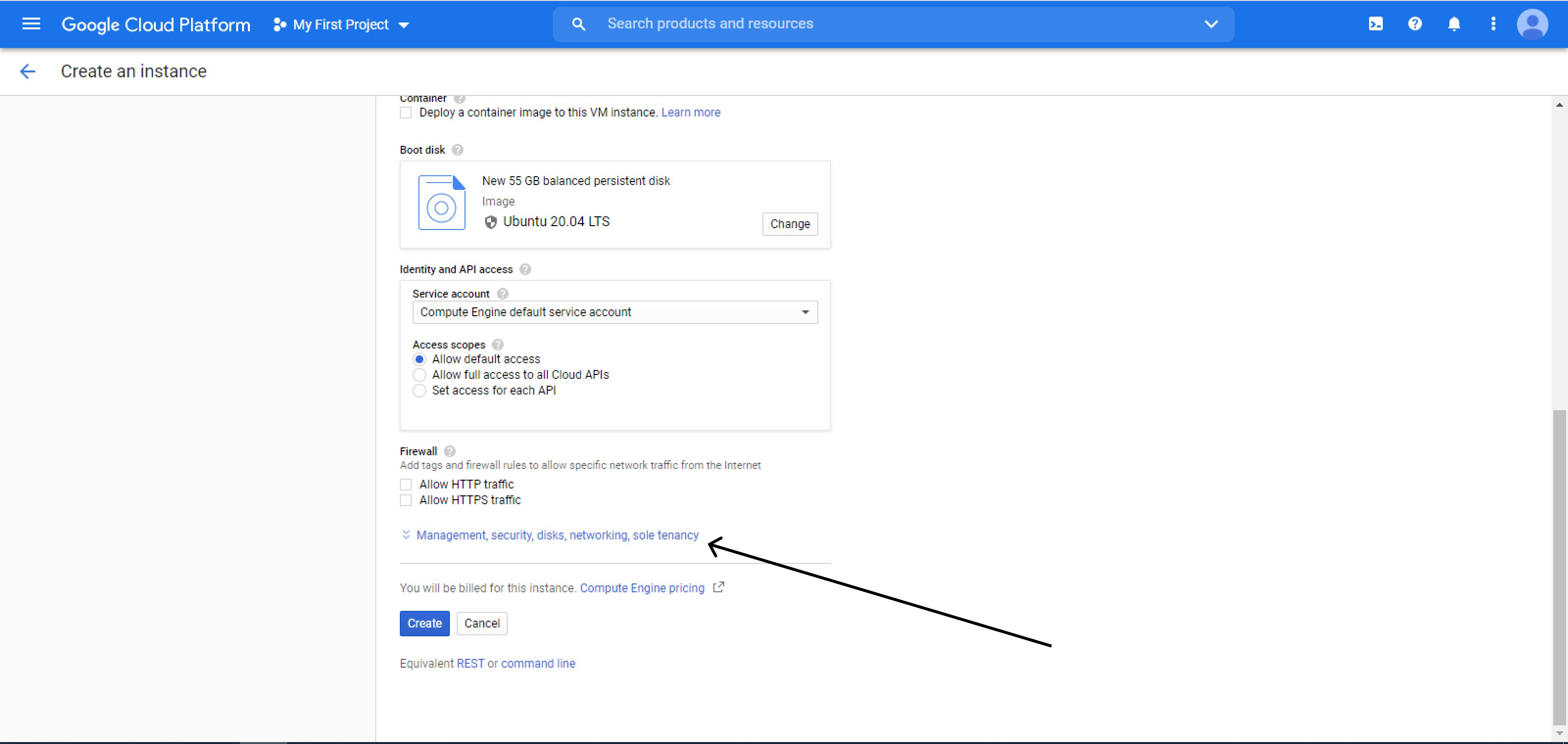 >>> Managment, security, disks, networking, sole tenancy >>> networking