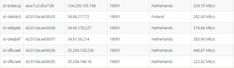 Как видим, в разделе Terminals, Google Cloud выдает довольно неплохую скорость (250 -450 Mb/s)